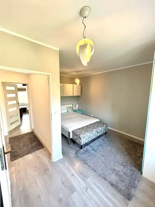 1 Pokój mniejszy z szafą przesuwną łóżkiem małżeńskim i meblami