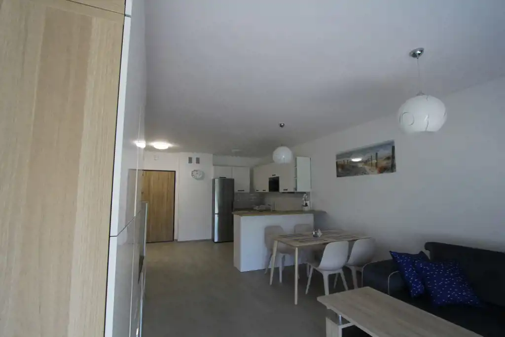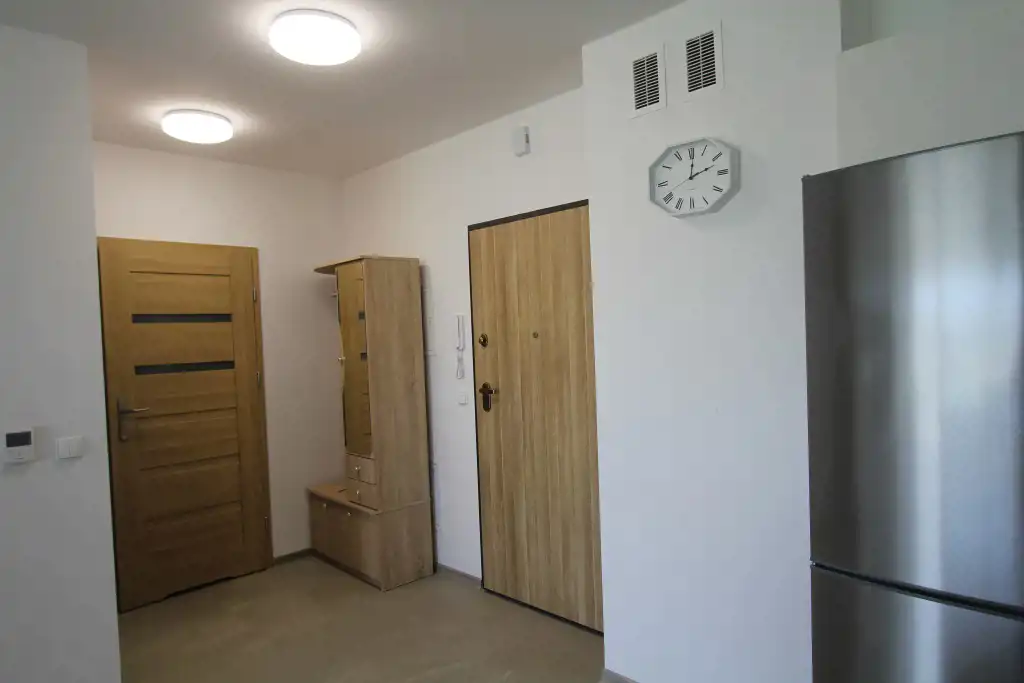 Nowe budownictwo, wysokiej jakości materiały, gładkie ściany, panele, gres.