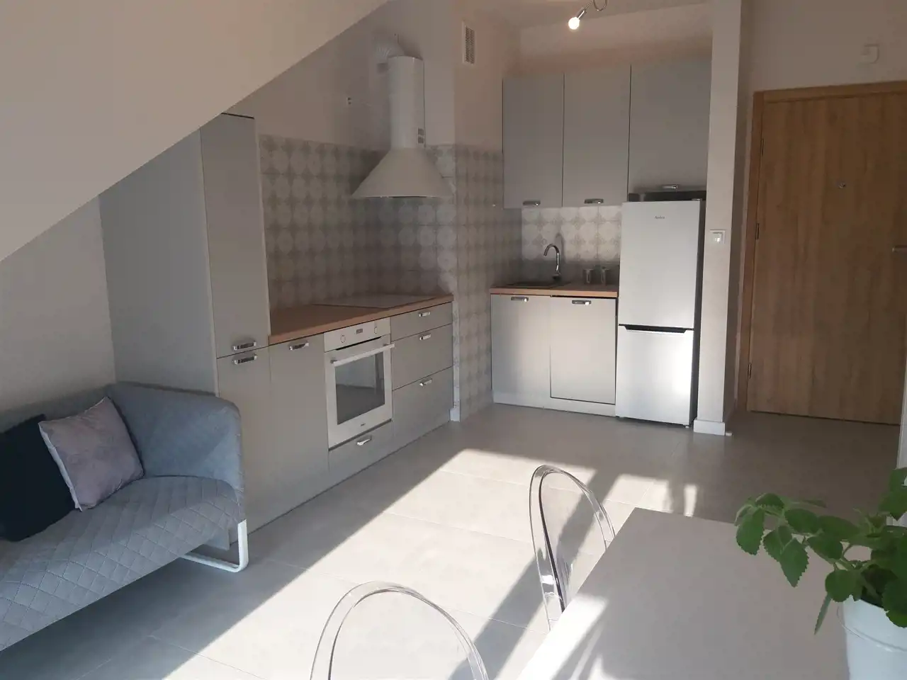 Mieszkanie składa się z pokoju z aneksem kuchennym ,sypialni, łazienki . Lokal umeblowany i wyosażony w sprzęt AGD (zmywarka ,lodówka ,pralka ). W sypialni wygodne szerokie łózko i praktyczna szafa.