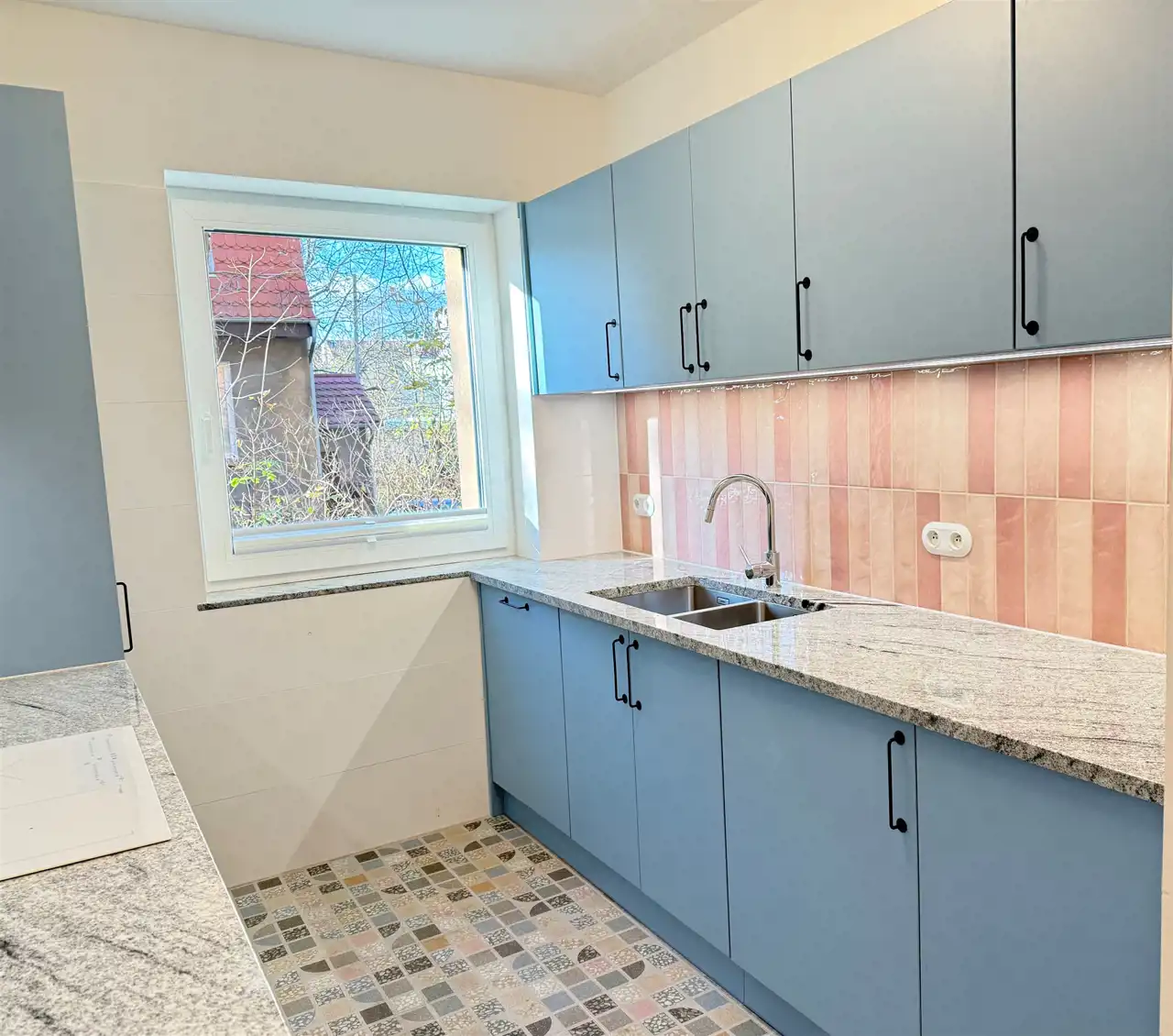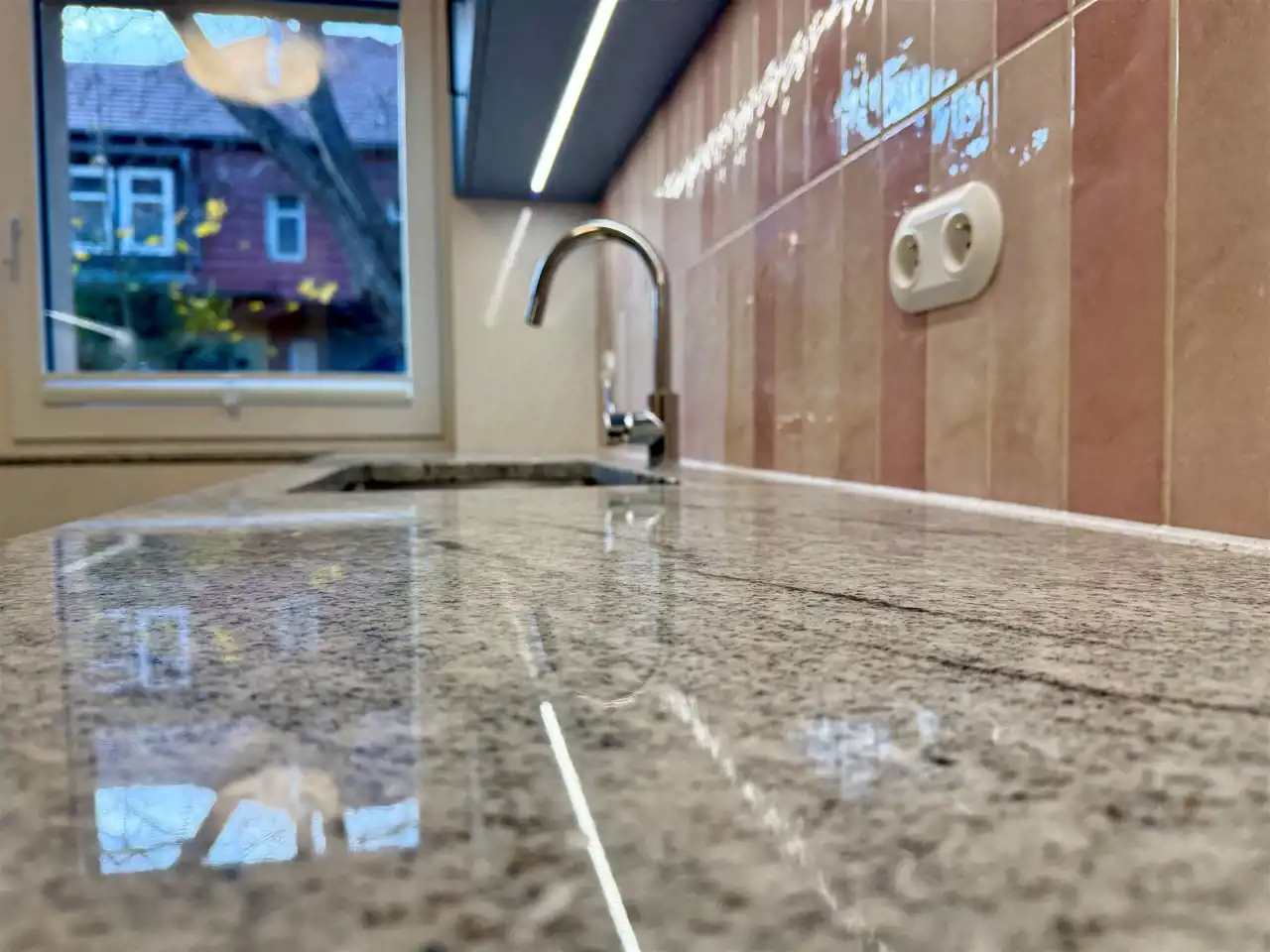 - zlew podwieszany pod granitowym blatem kuchennym,
