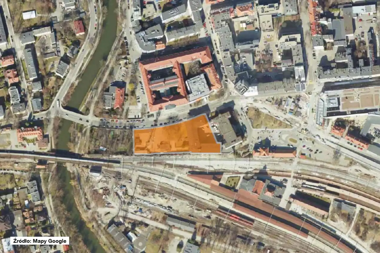 Działka nr 3/1 jest zabudowana kompleksem budynków biurowych oraz technicznych, w tym garażami.