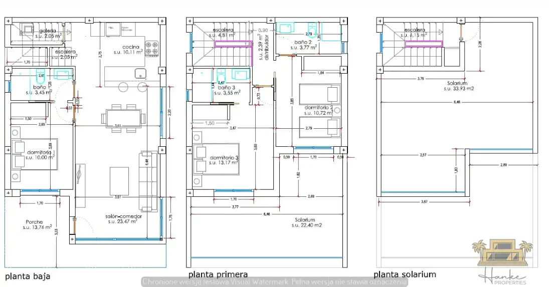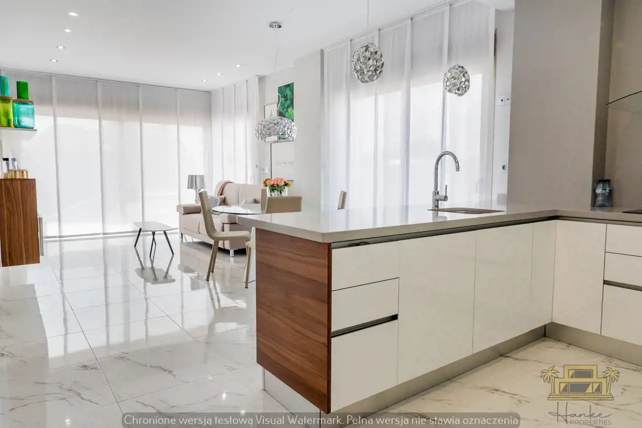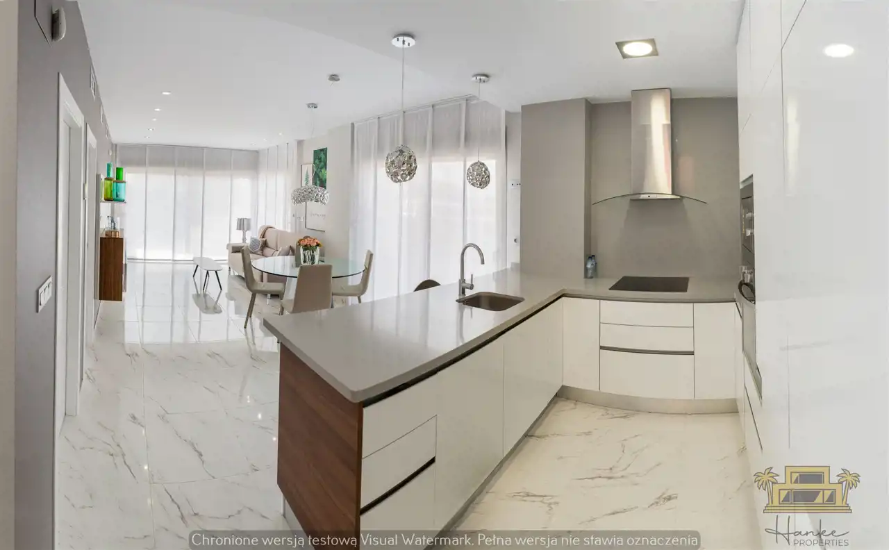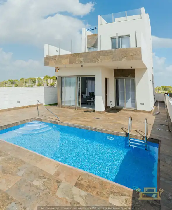 Piękna villa z powierzchnią całkowitą 270m2 położona w Orihuela Costa w dzielnicy Viilamartin. Dom posiada 3 sypialnie, 2 łazienki, duży salon i otwartą kuchnię. Dodatkowo można dokupić piwnicę o powierzchni 120m2. Na zewnątrz znajduje się taras oraz 75m2 solarium (taras na dachu). Dom na działce 257m2 gdzie znajdziemy również prywatny basen.