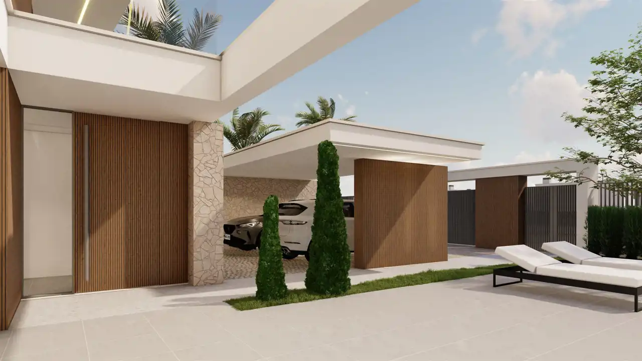 Willa jest rozłożysta, zajmuje dwa poziomy. Posiada przestronny salon otwarty na kuchnię o powierzchni 94m2, 4 sypialnie, każda z prywatną łazienką oraz toaletę dla gości.