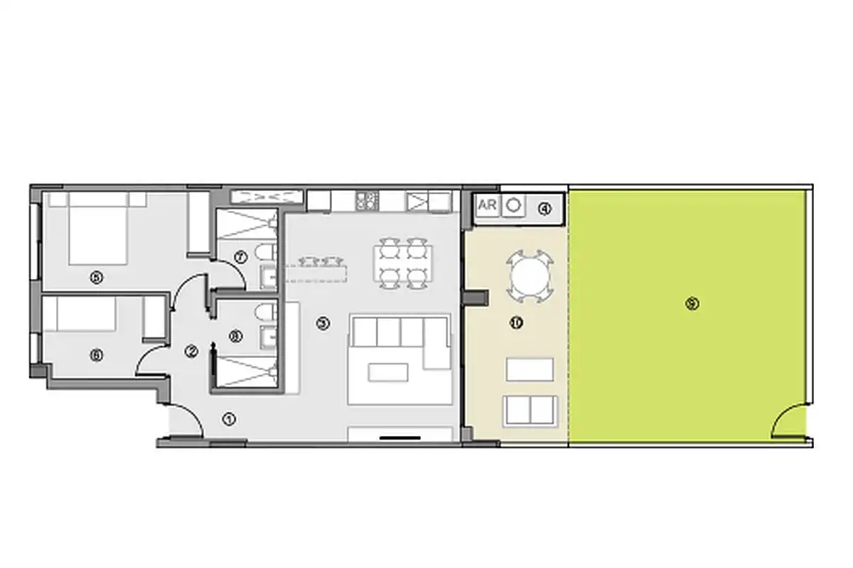 2 sypialnie | 2 łazienki | Przestronny taras | Osiedlowy basen bez krawędzi | Gotowy do zamieszkania