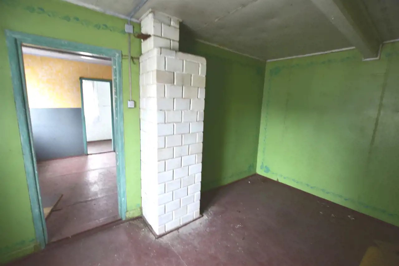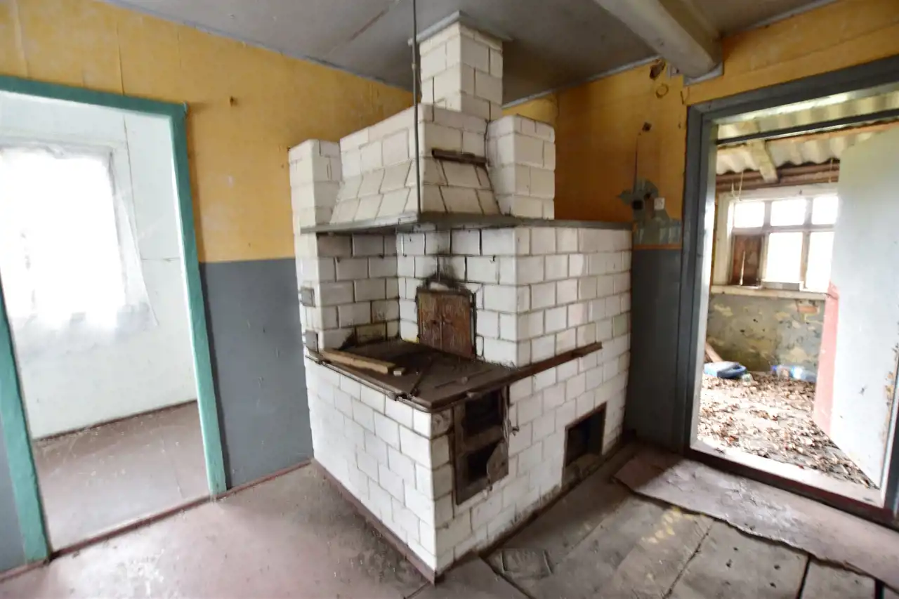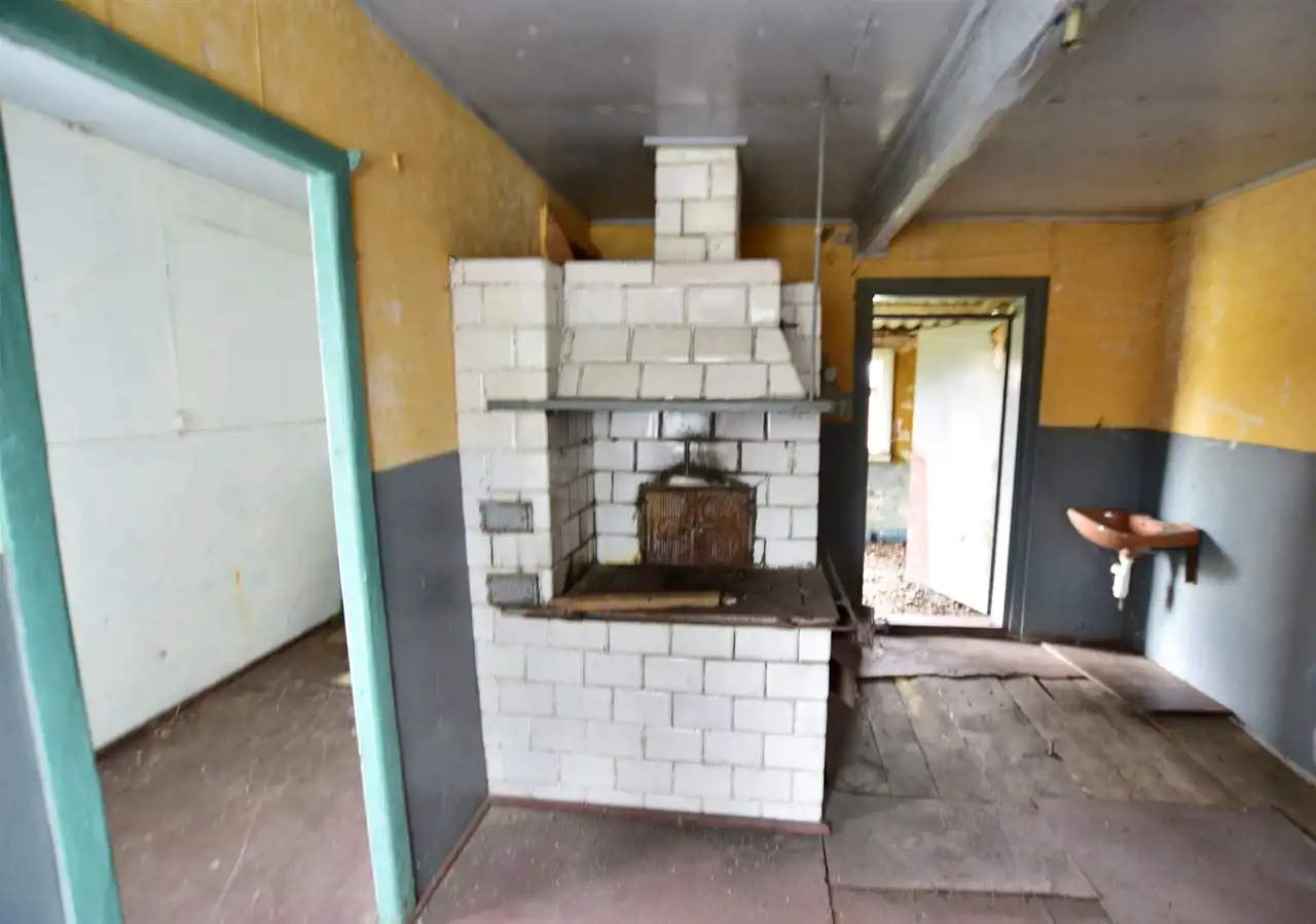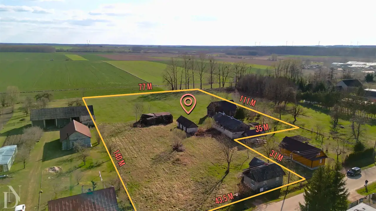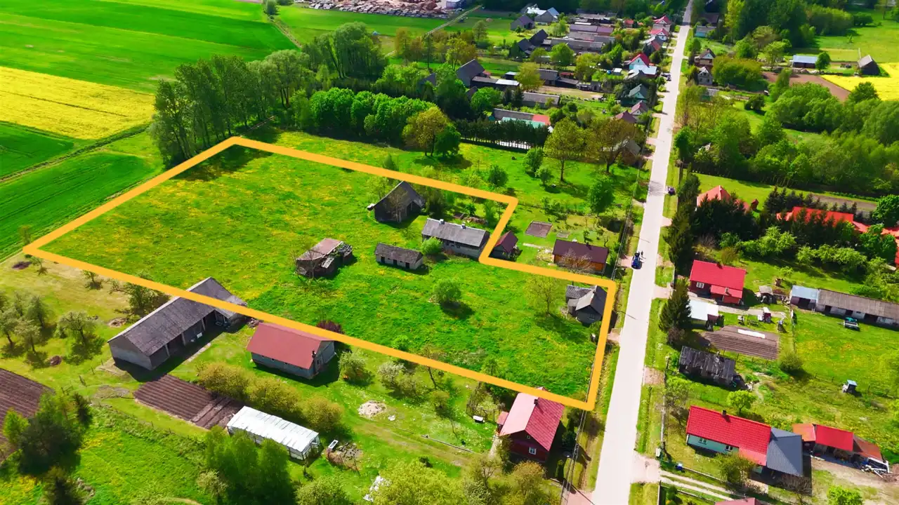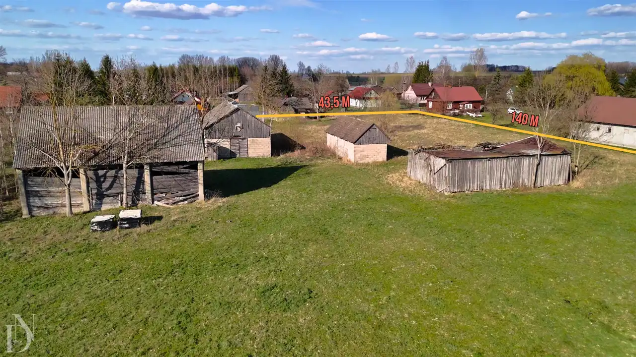 Na działce znajduje się dom z cegły o powierzchni około 65 m², który składa się z czterech izb: przedsionka, kuchnia która jest centralnym punktem z piecem chlebowym oraz dwóch pokoi. Całość ogrzewana jest dwoma piecami kaflowymi, co nadaje wnętrzu niepowtarzalny klimat. Dodatkowo, na terenie posesji znajdują się dwie stodoły – jedna z nich z pustaków betonowych, druga na słupach żelbetowych ściany z bala, każda o powierzchni 100 m². Chlew z bloczków betonowych o powierzchni 50 m² oraz stodoła z bala, która wymaga pilnej interwencji.