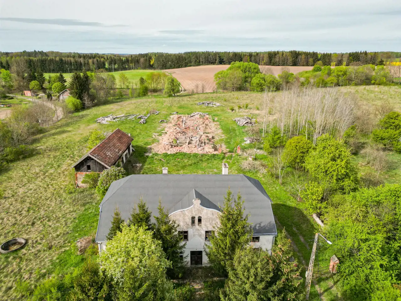 Na sprzedaż wyjątkowa nieruchomość z ogromnym potencjałem – zabytkowy, poniemiecki dworek o powierzchni 239 m², usytuowany na dużej, częściowo ogrodzonej działce o powierzchni 15 920 m².