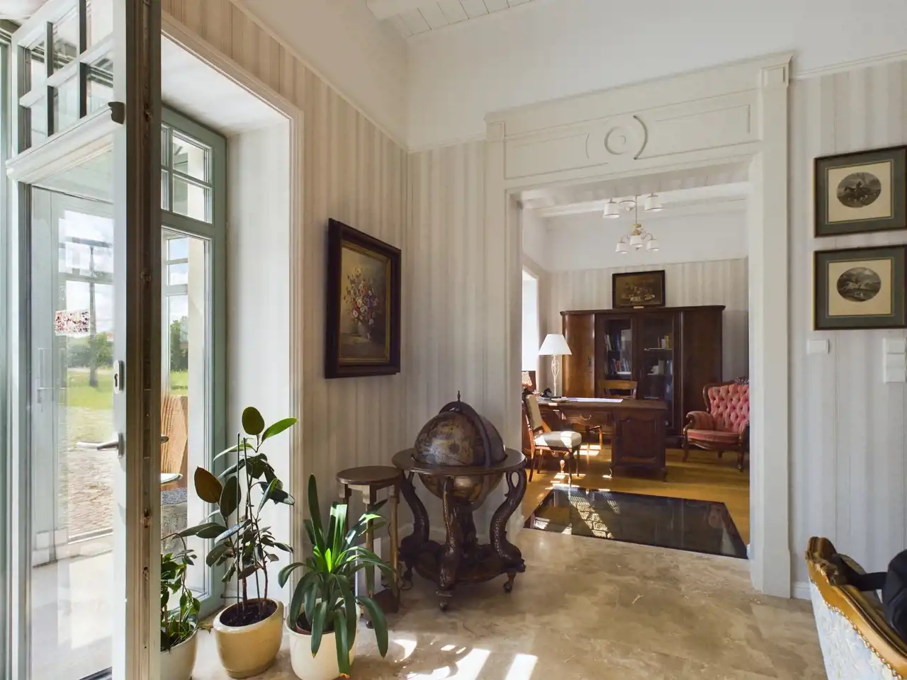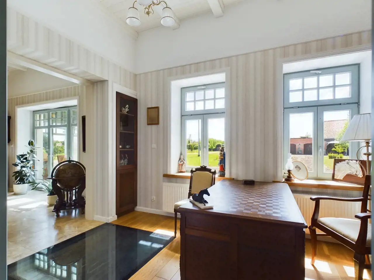 Praktycznie całe wyposażenie pałacu jest integralną częścią nieruchomości i pozostaje w cenie.