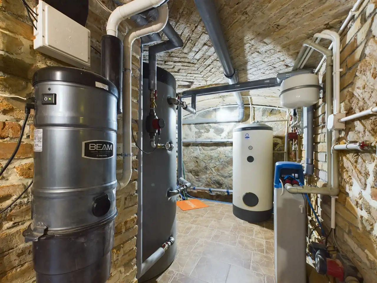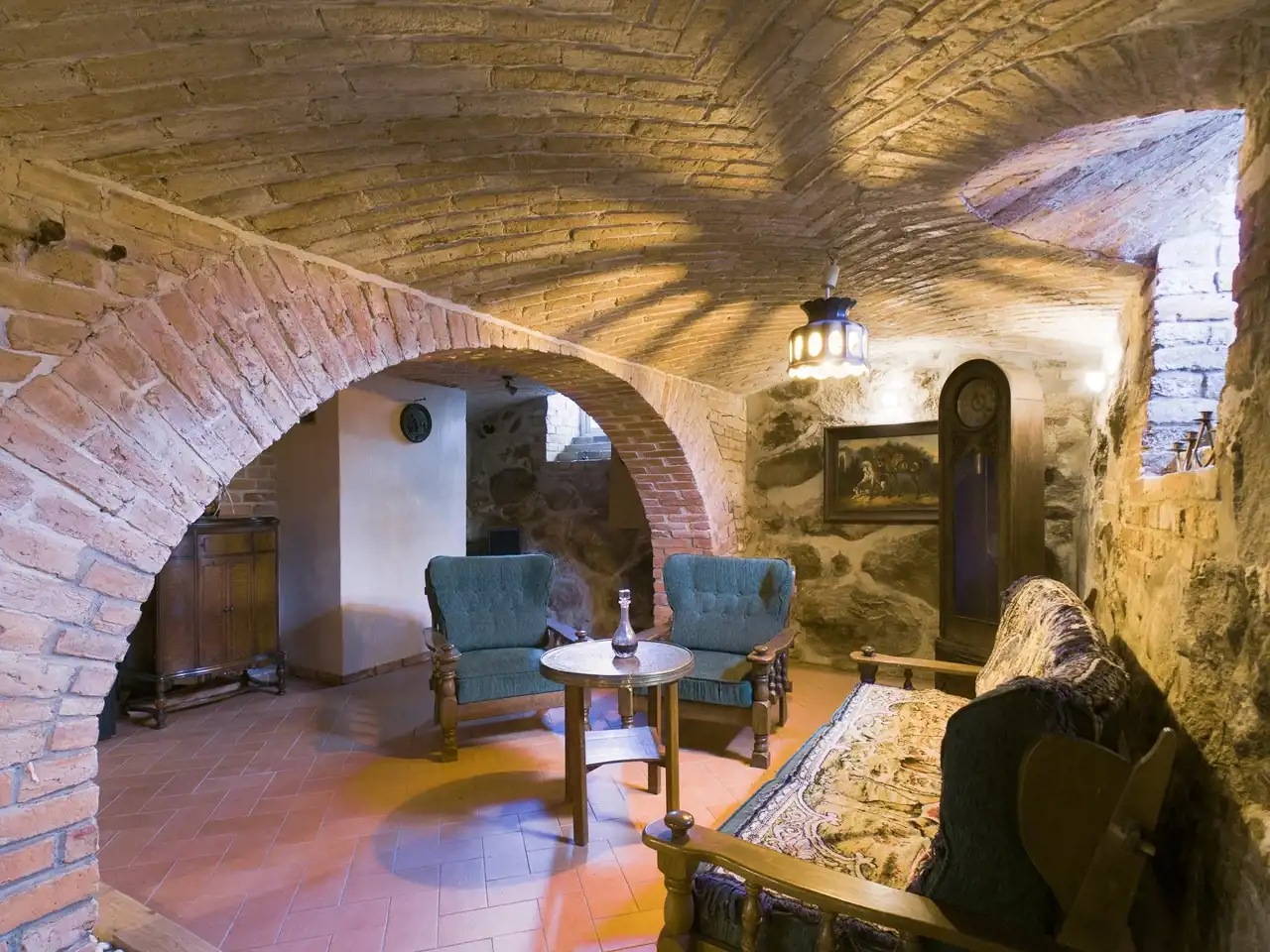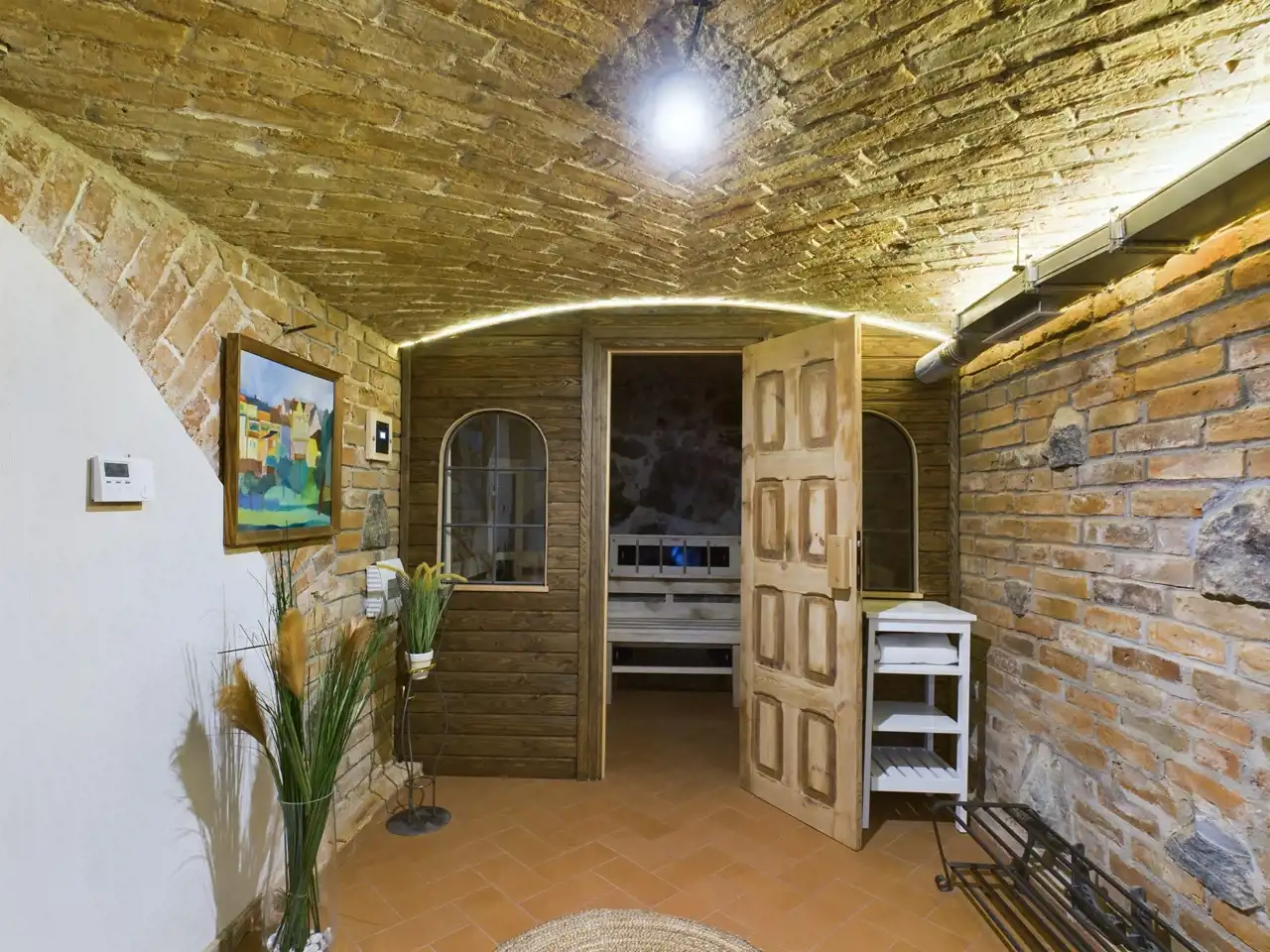 PIWNICA - chillout room 45,5 m2, sauna i łazienka 18,7 m2, kotłownia z magazynkiem 22,5 m2.