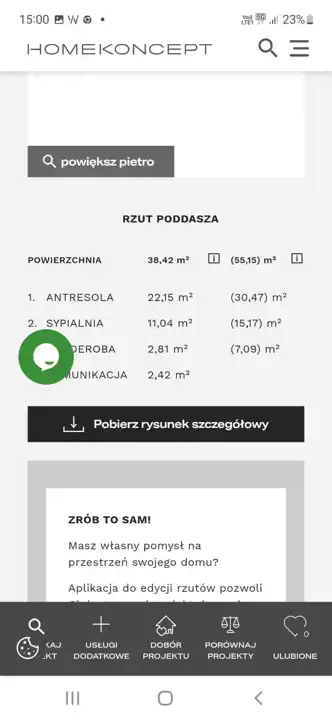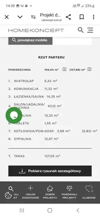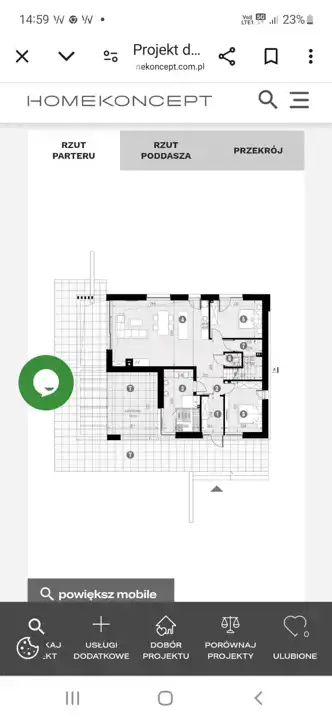 - salon połączony z jadalnią i kuchnią - 43,12m2