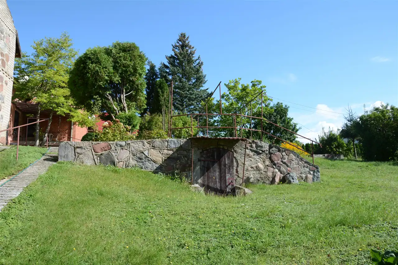 Kamienna piwniczka na działce – niezwykle klimatyczny element, podkreślający mazurski charakter posiadłości.