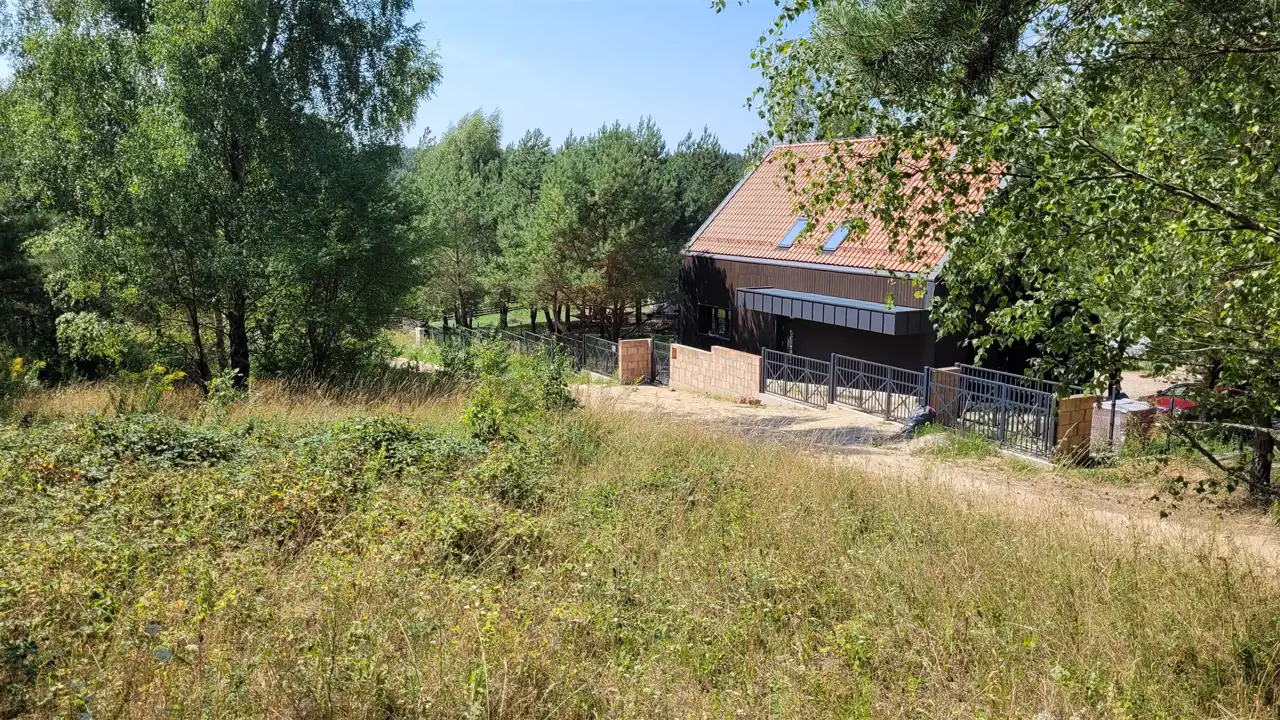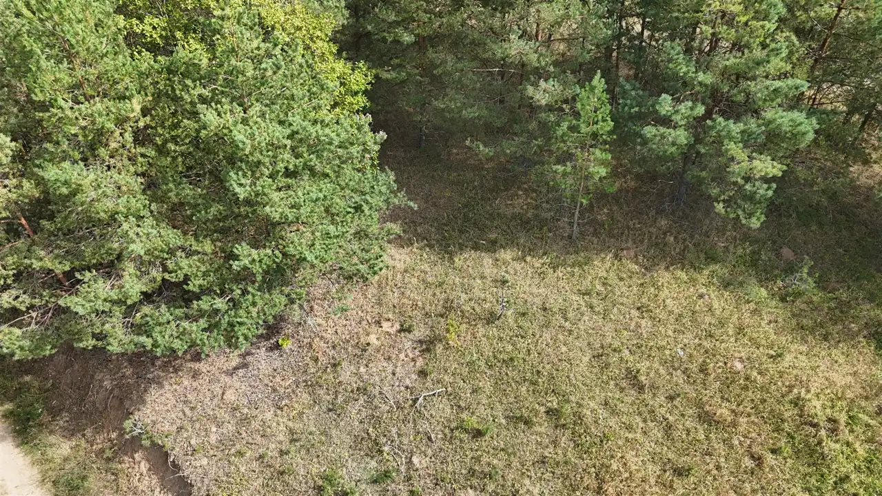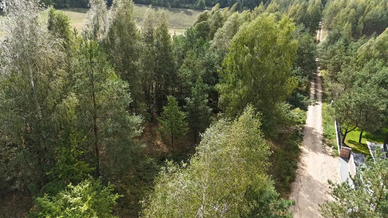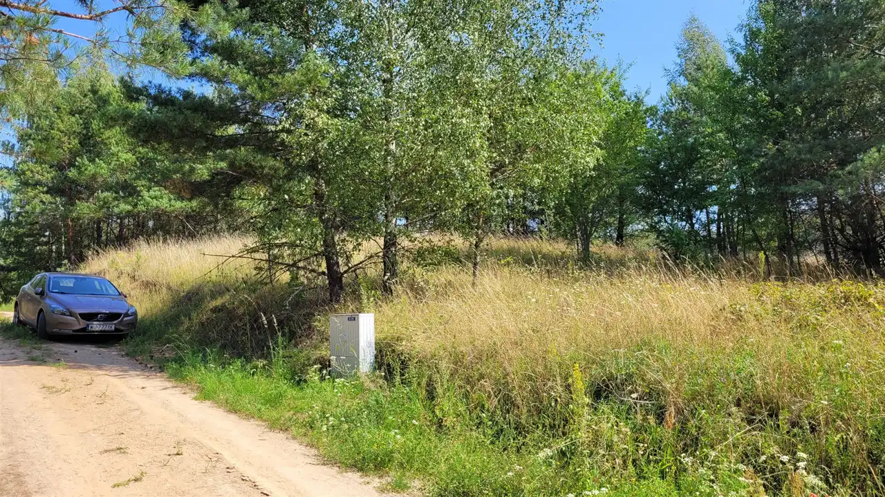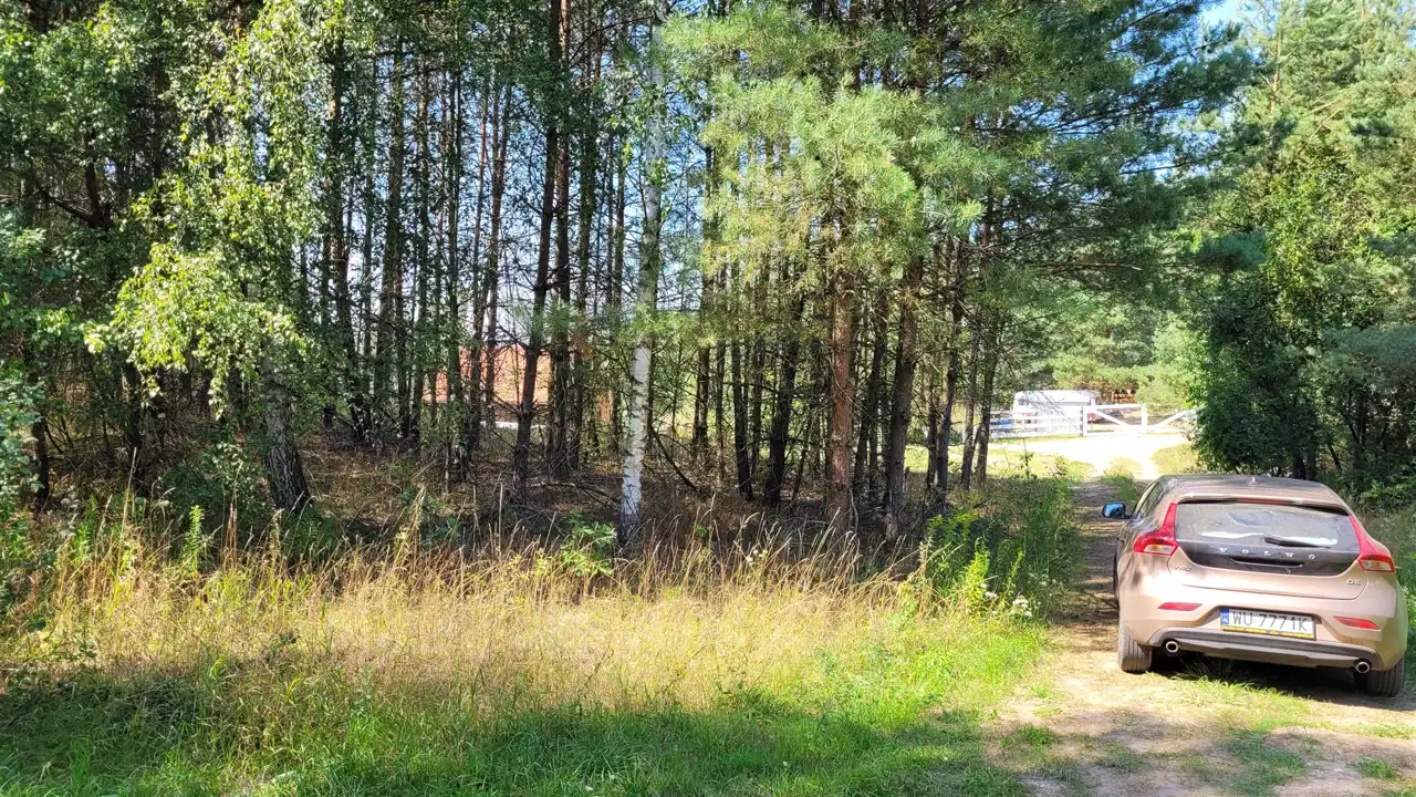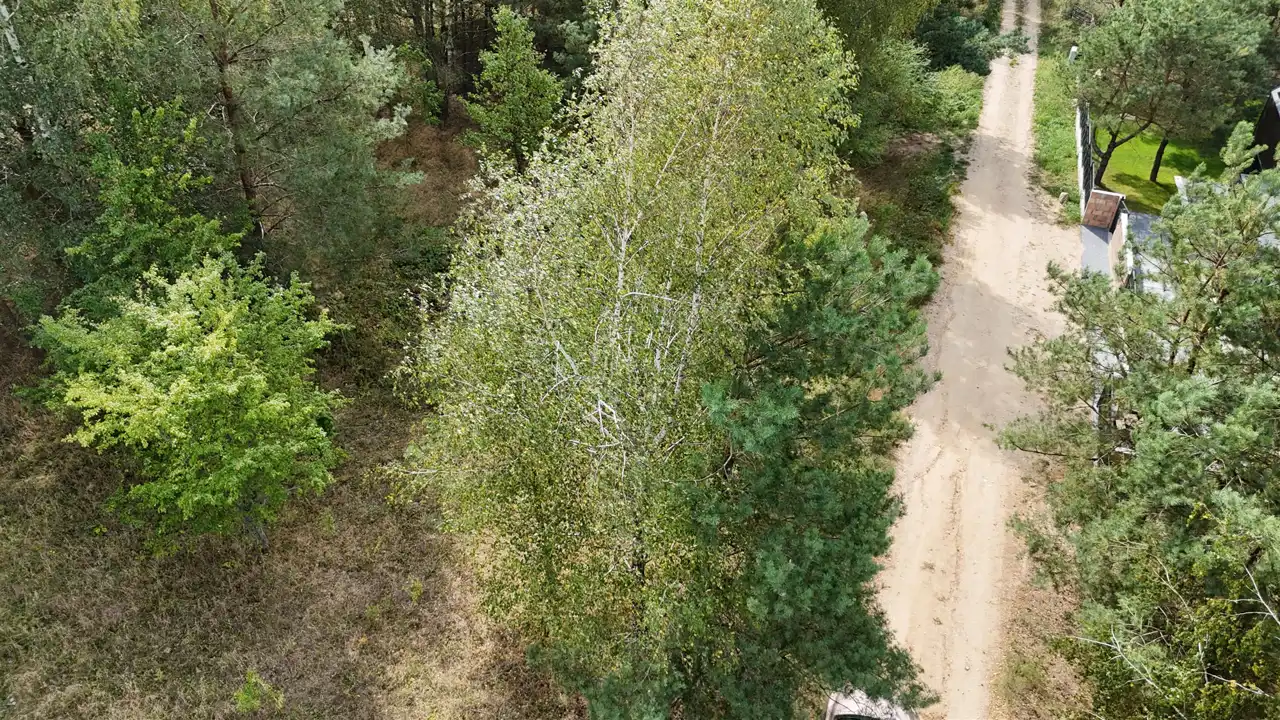 Działka porośnięta samosiewami sosny i brzozy, co dodaje uroku i naturalnego klimatu.