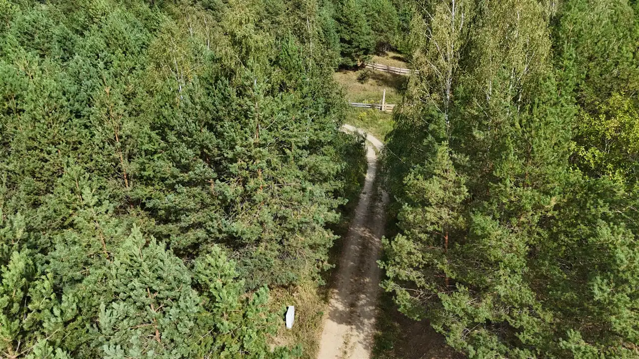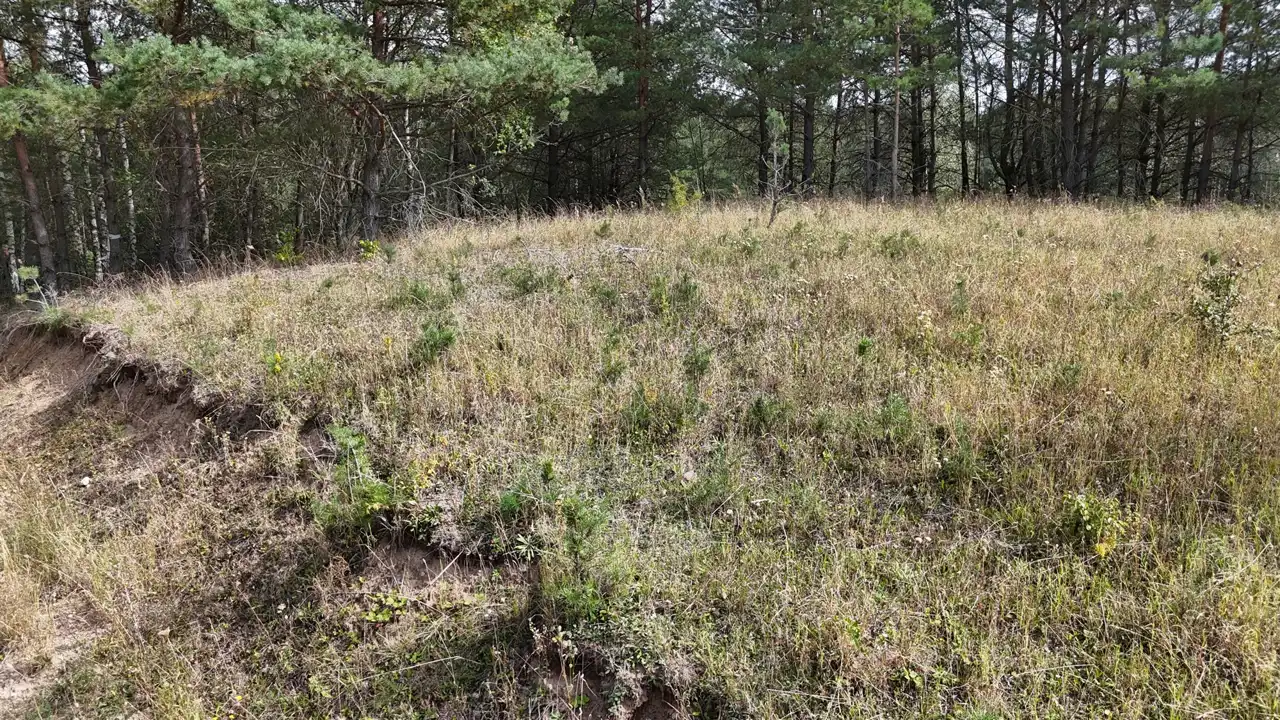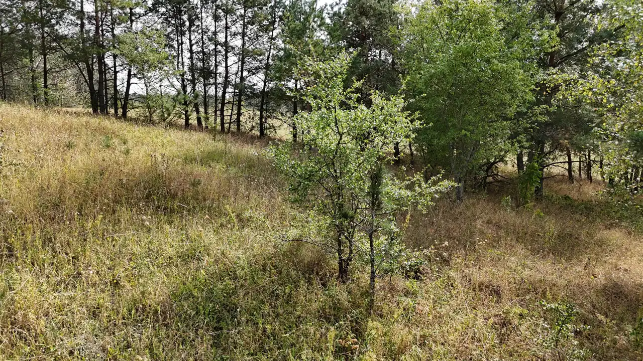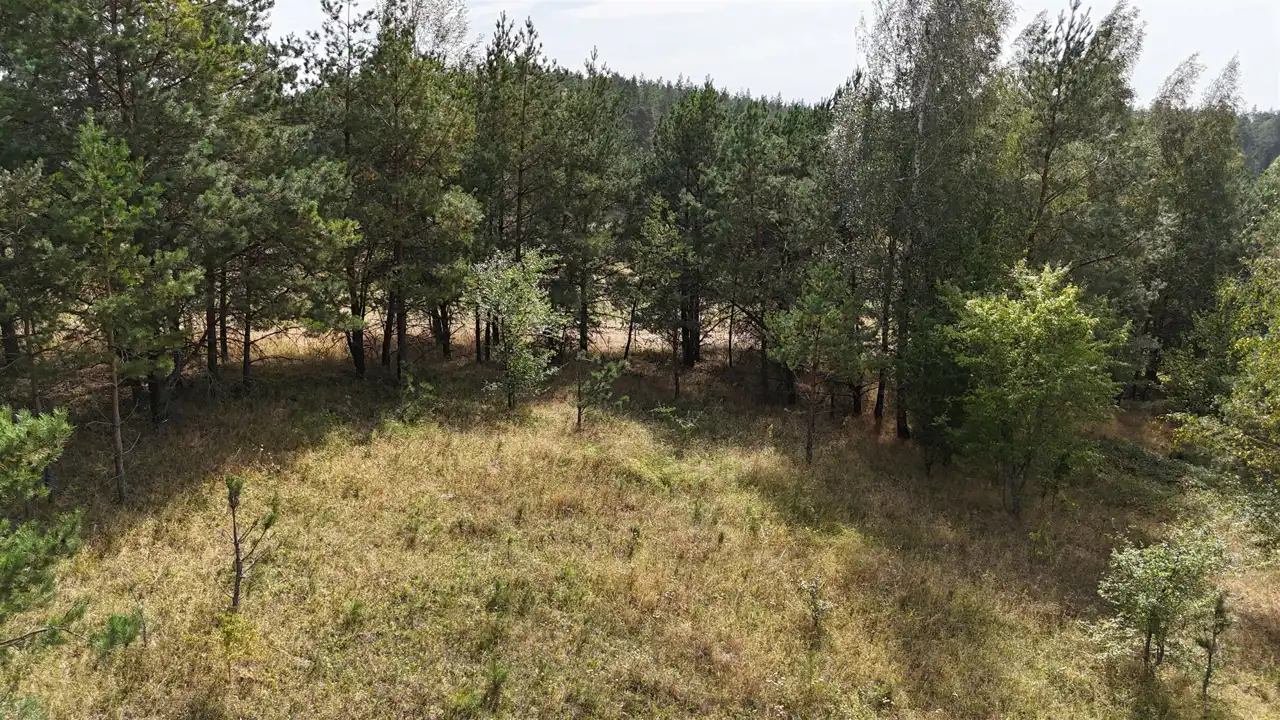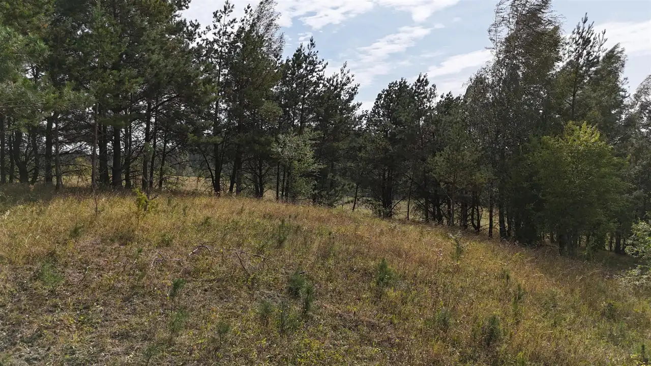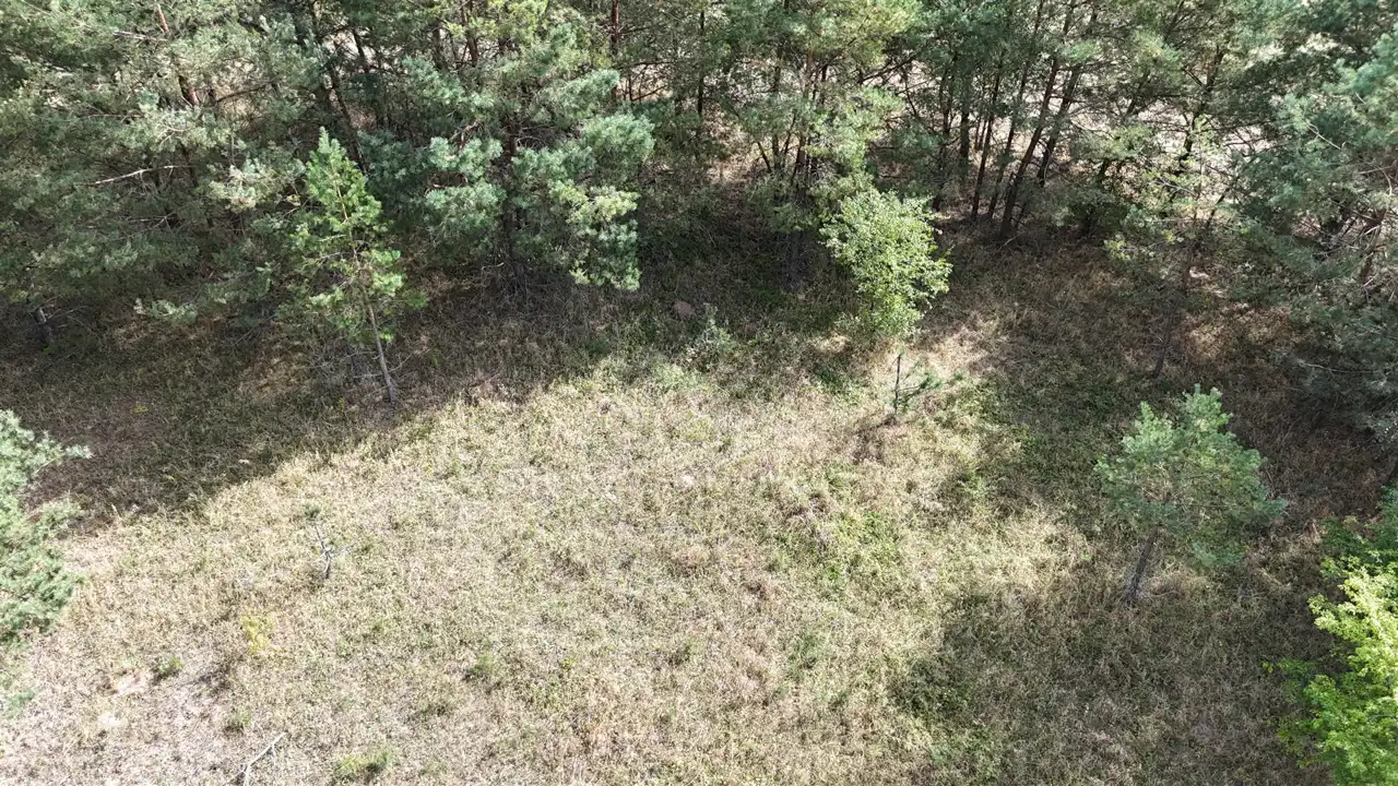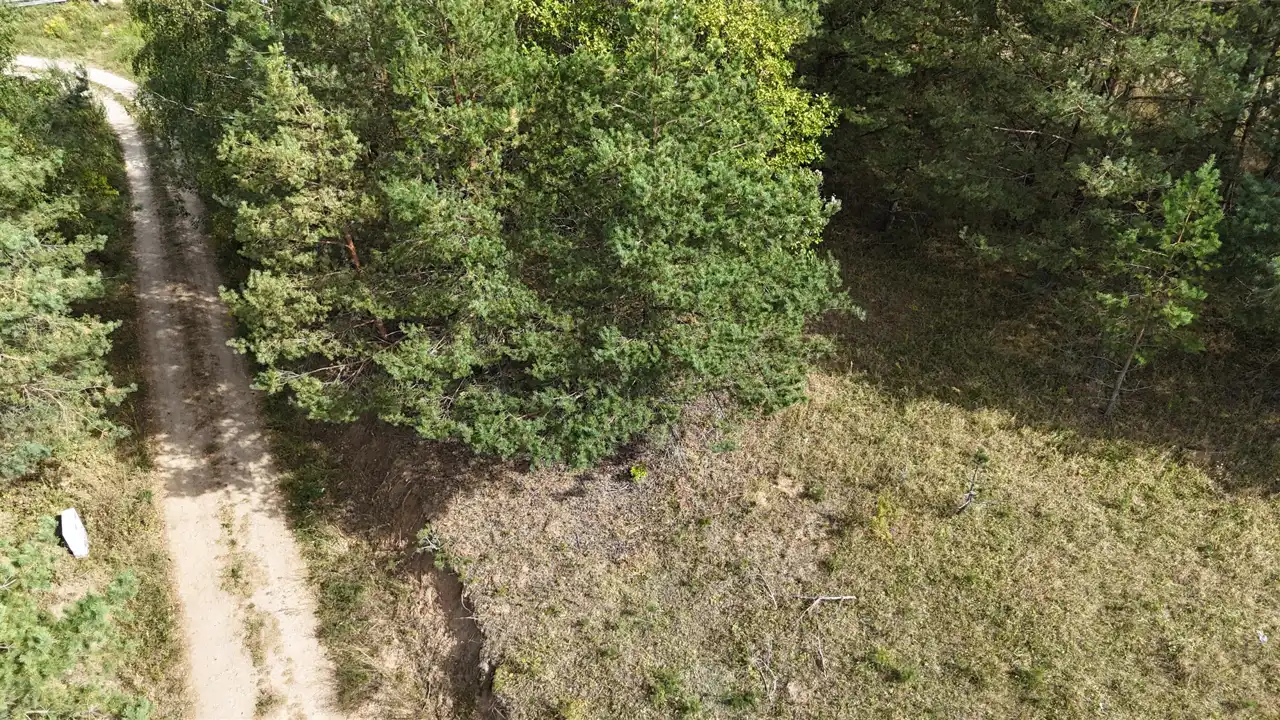 Działka porośnięta samosiewami sosny i brzozy, co dodaje uroku i naturalnego klimatu.