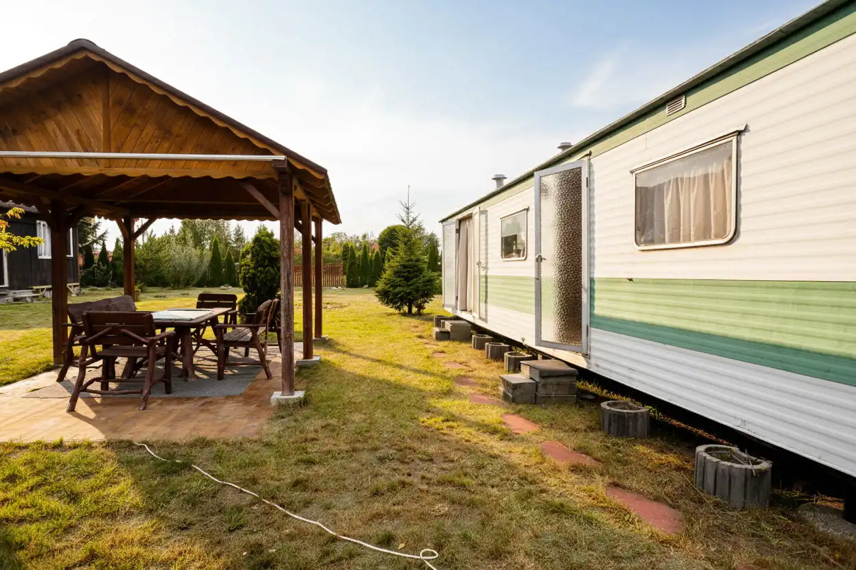 Domek holenderski składa się z salonu z aneksem kuchennym, 2 sypialni i małej łazienki. W cenie zostaje kompletne wyposażenie (lodówka, mikrofala, zlew itp)