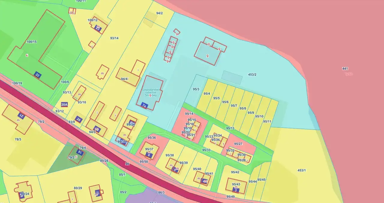 - dz. nr 95/3 o pow. 0,0240 ha niezabudowana i przeznaczona w miejscowym planie zagospodarowania przestrzennego pod zabudowę mieszkaniową jednorodzinną.