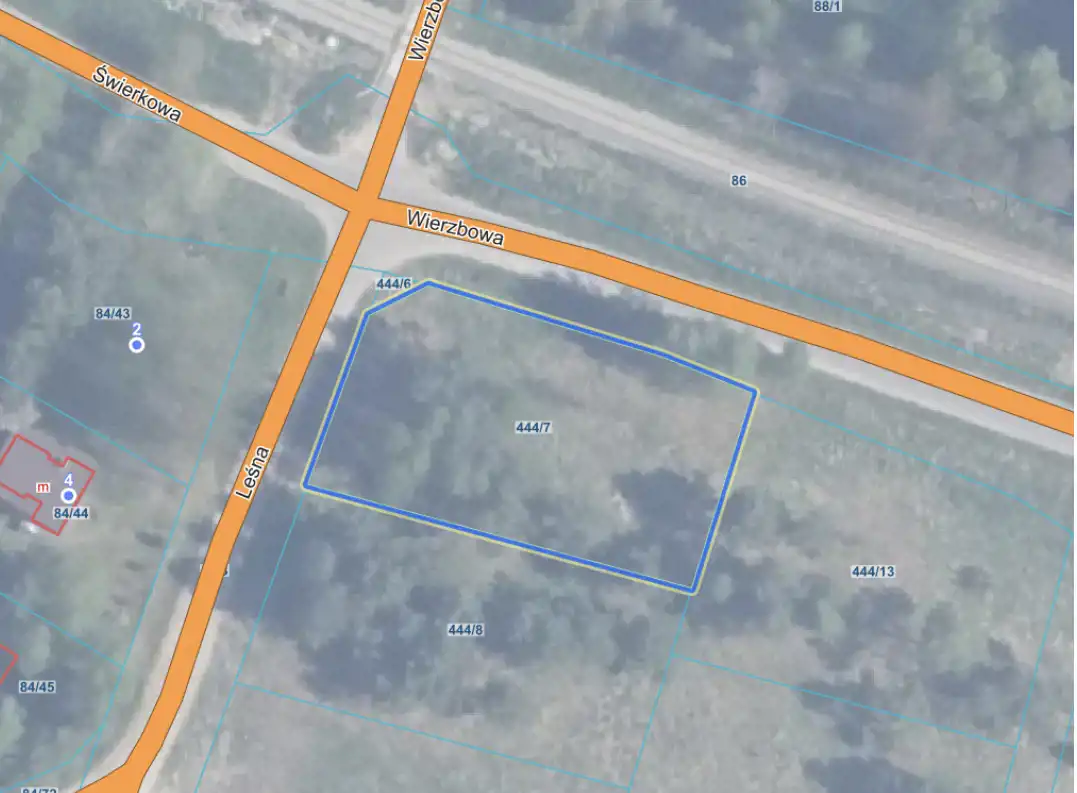 Przykład: działka 444/7 o powierzchni 1100 m² = 198 000 zł