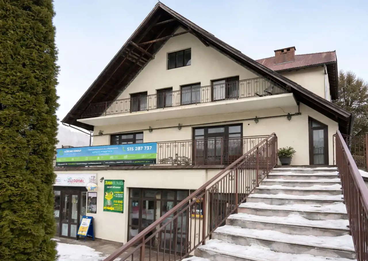 Na sprzedaż POLECAMY budynek o charakterze usługowo-mieszkalnym z dużym potencjałem inwestycyjnym. Obiekt może funkcjonować jako kompleks hotelowo-usługowy, z możliwością prowadzenia restauracji oraz działalności handlowej.