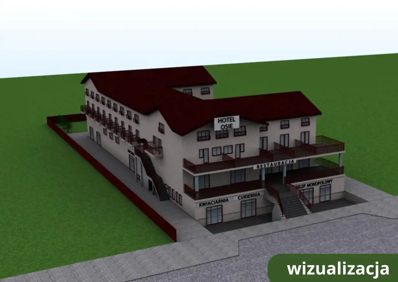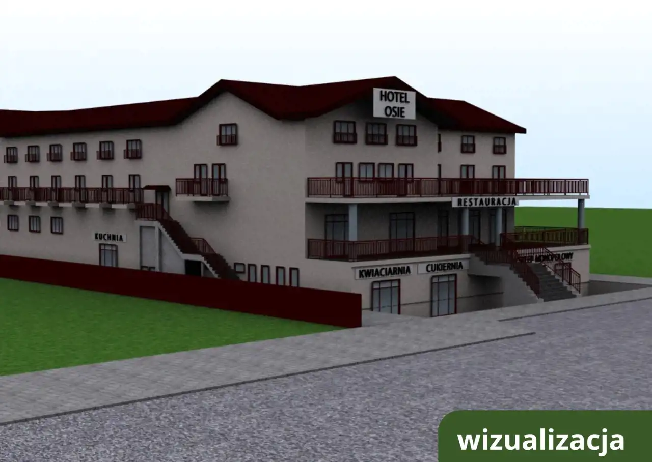 Układ budynku oraz jego powierzchnia pozwalają na rozwinięcie funkcji hotelowej, gastronomicznej lub usługowej. Dodatkowy potencjał stanowi taras po dawnej restauracji oraz możliwość adaptacji strychu na kolejne pokoje lub przestrzeń użytkową.