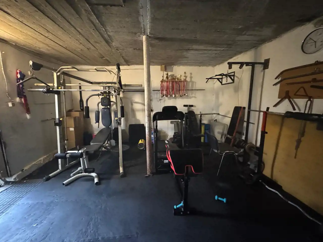 Cała posesja jest ogrodzona i wyposażona w monitoring, co zapewnia bezpieczeństwo i prywatność. Na podwórku znajduje się szambo oraz dwie bramy wjazdowe ułatwiające dostęp. Na terenie usytuowane są również liczne budynki gospodarcze, w tym garaż, warsztat oraz pomieszczenie przeznaczone na przechowywanie przetworów. W jednym z budynków urządzono siłownię, którą można pozostawić przyszłemu właścicielowi za dodatkową opłatą. Na działce znajduje się również wyznaczone miejsce na kurnik.