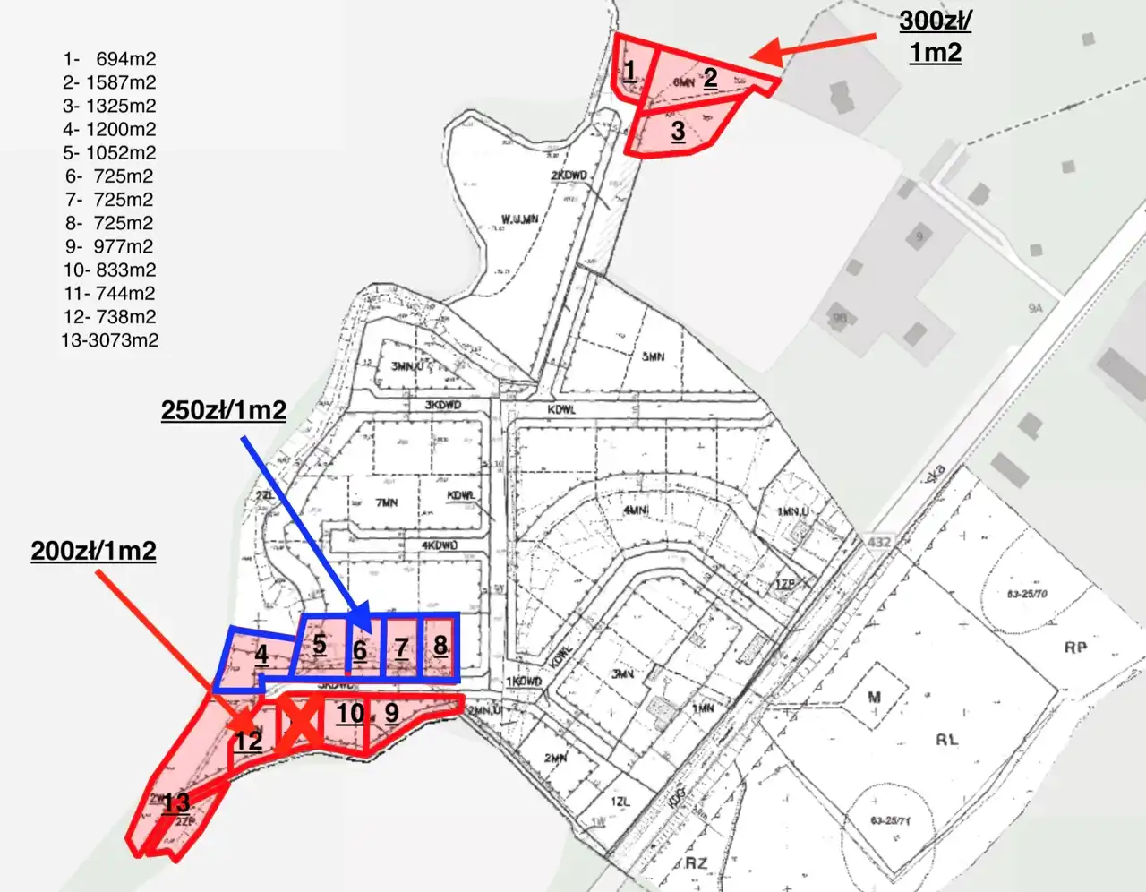 694m2, 1587m2, 1325m2 w cenie 300 zł/1m2