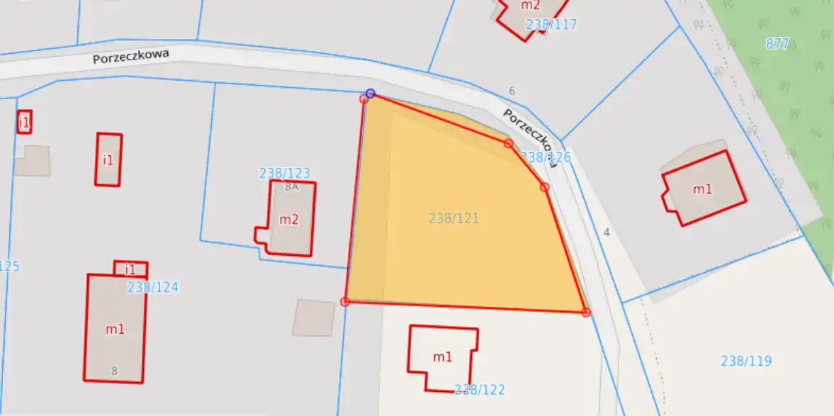 Działka znajduje się przy ulicy Porzeczkowej, w sąsiedztwie domów jednorodzinnych .