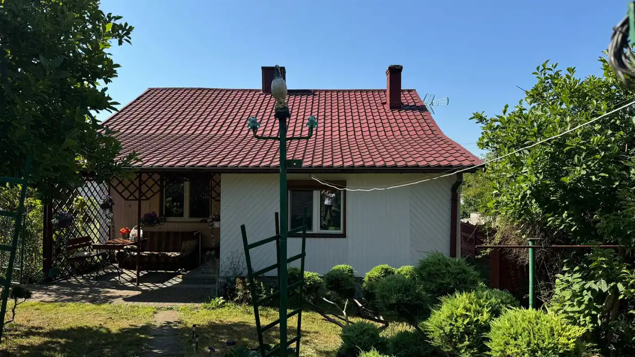 Dom mieszkalny parterowy z poddaszem (71,46 m2) z dachem dwuspadowym z blachodachówki. Powstał w tradycyjnej z lat 70 technologii (pustak, cegła).