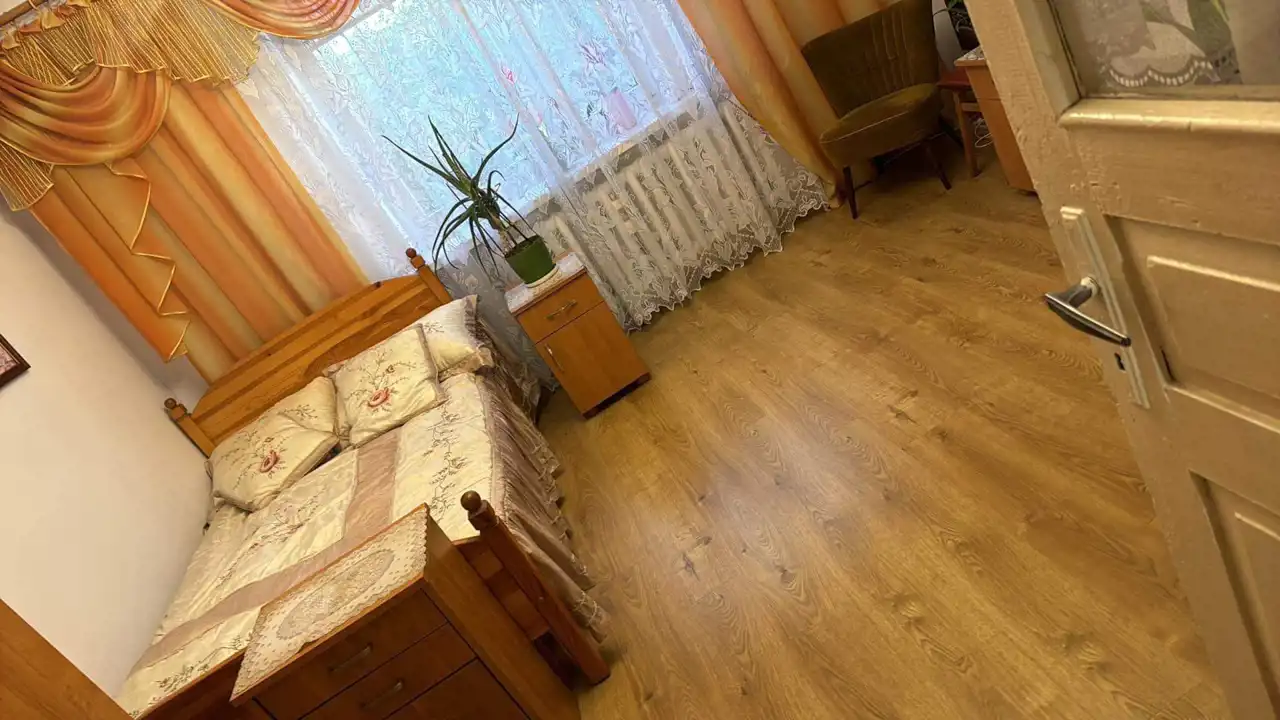 W pokojach panele na podłodze oraz drewniane drzwi. W łazience prysznic.