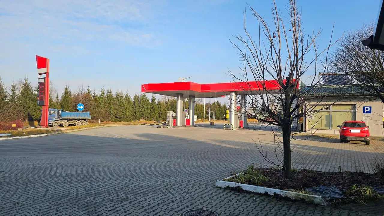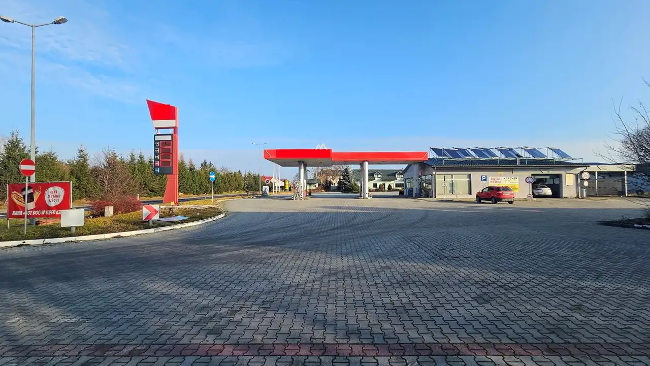 Fuel station with a car wash: Located on a 1,694 m² plot. The station is operational and has all necessary permits and approvals from the Office of Technical Inspection. It features a spacious entry/exit area and lighting. A KARCHER car wash with a photovoltaic installation is on-site. The station sells all types of fuels, including PB, ON, and LPG. It has four dispensers (three for fuel and one for LPG) and underground fuel storage tanks: two 30 m³ tanks (each divided into two 15 m³ compartments) and an LPG storage tank of 4.85 m³.