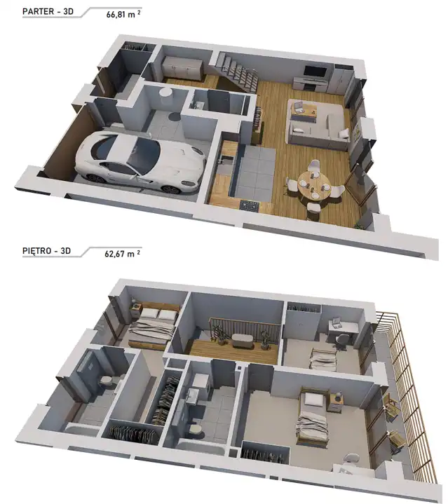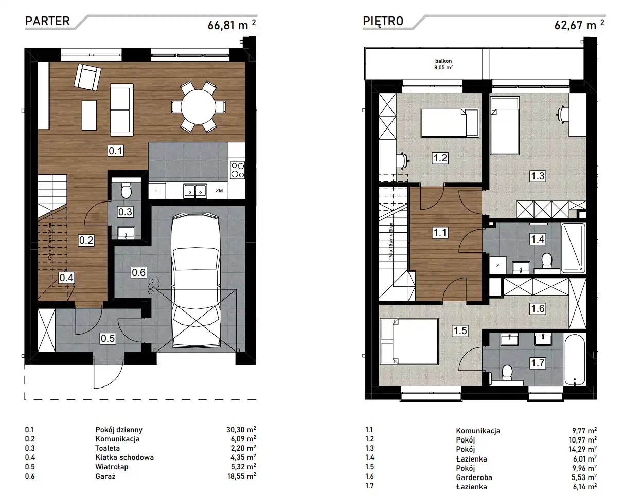 Domy charakteryzują się przemyślanym układem i przestronnymi pomieszczeniami.