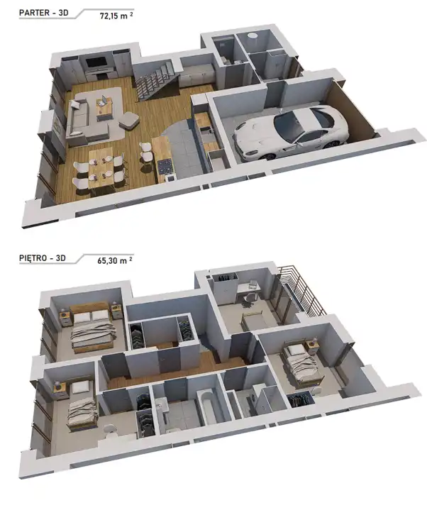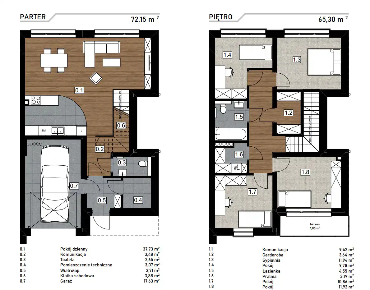 Domy charakteryzują się przemyślanym układem i przestronnymi pomieszczeniami.