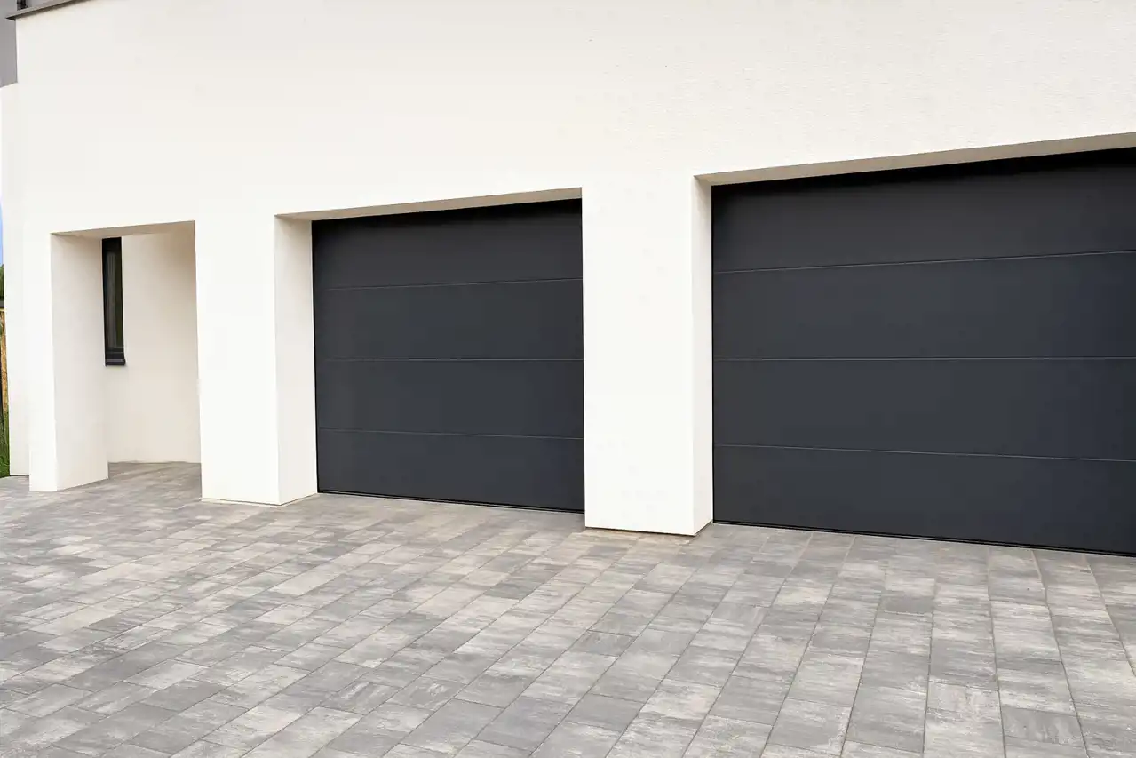 Brama garażowa Krispol – segmentowa białe wewnątrz/grafit na zewnątrz