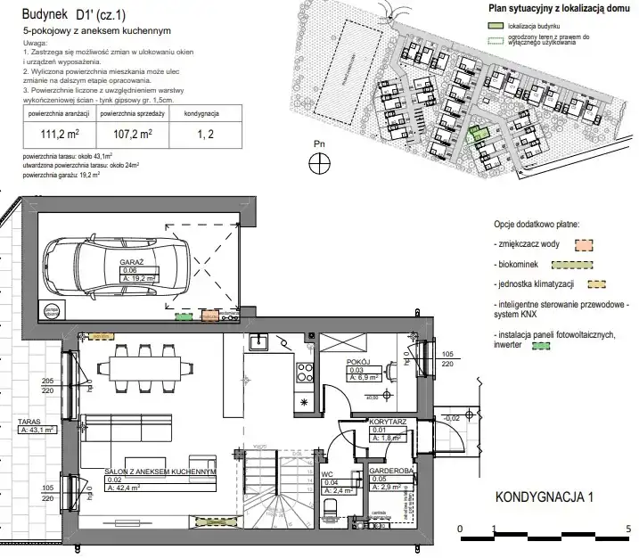 Nieruchomość o powierzchni 107,20 m² zachwyca przemyślanym układem, nowoczesnymi rozwiązaniami technologicznymi oraz elegancką stylistyką. W cenie znajduje się również garaż 20 m² oraz imponujący taras 43 m², który stanowi naturalne przedłużenie strefy dziennej.