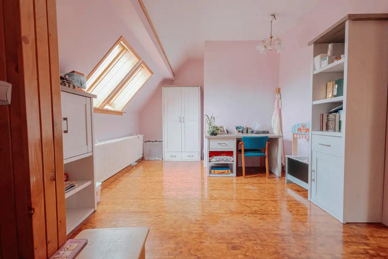 Na piętrze są trzy pokoje , łazienka i korytarz oraz dwa pomieszczenia gospodarcze plus jedno pomieszczenie z możliwością przeznaczenia na zimowy ogród.