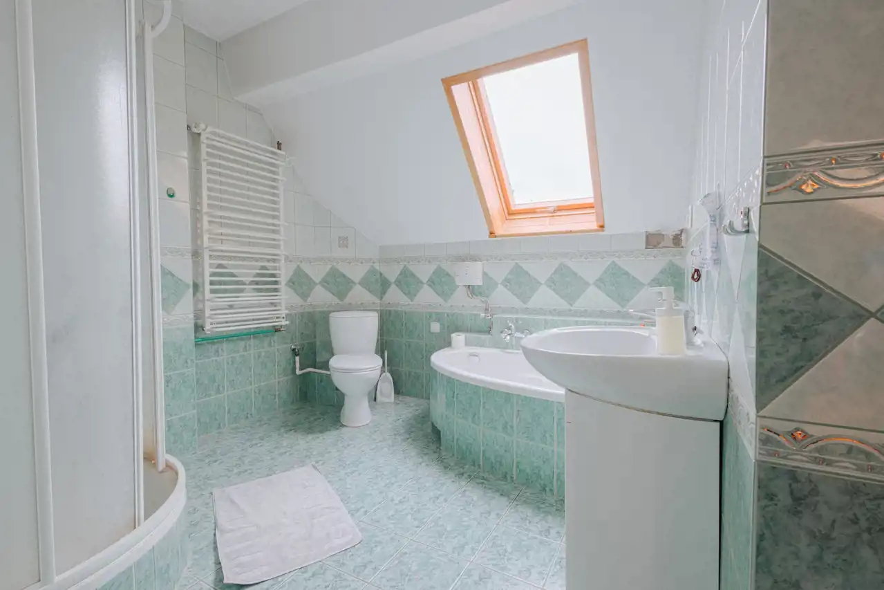Na dachu budynku znajdują się baterie solarne - podgrzewają wodę.