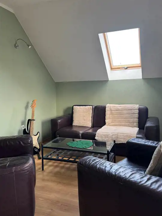 - Przestronny salon – 30 m², połączony z samodzielną, jasną kuchnią (12 m²)