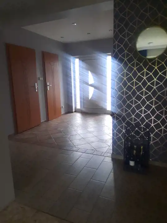 Z dużego przedpokoju wejście do wc , garderoby oraz zejście do piwnicy i garażu.