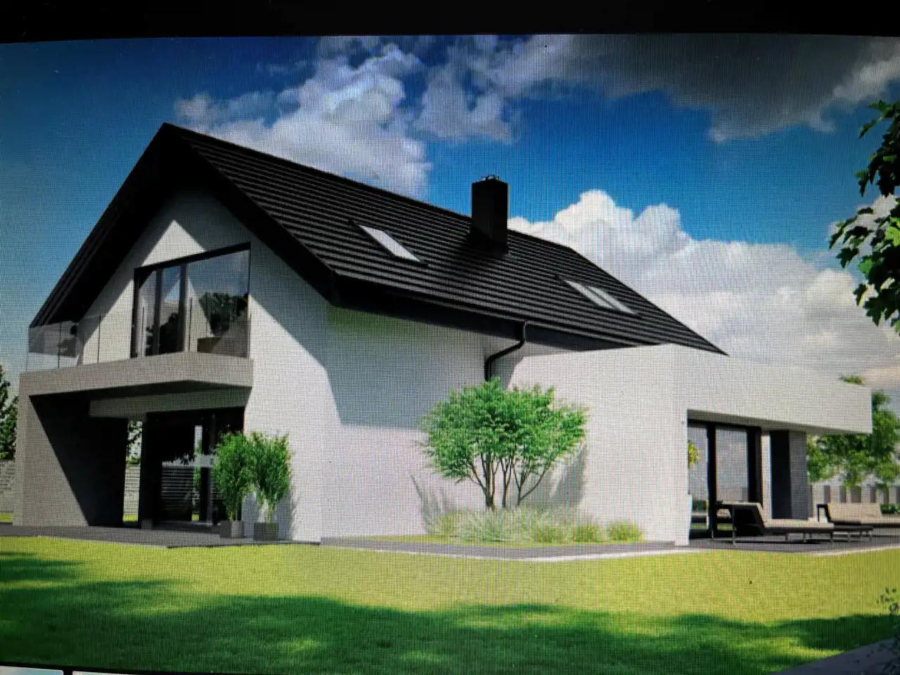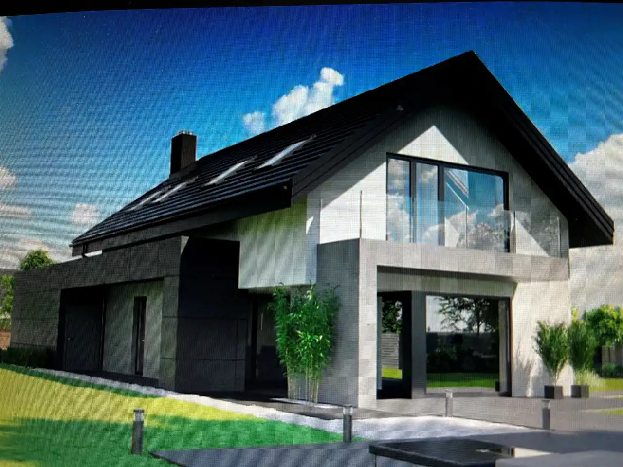 Nowoczesna przeszklona bryła domu gwarantuje duża ilość naturalnego światła.