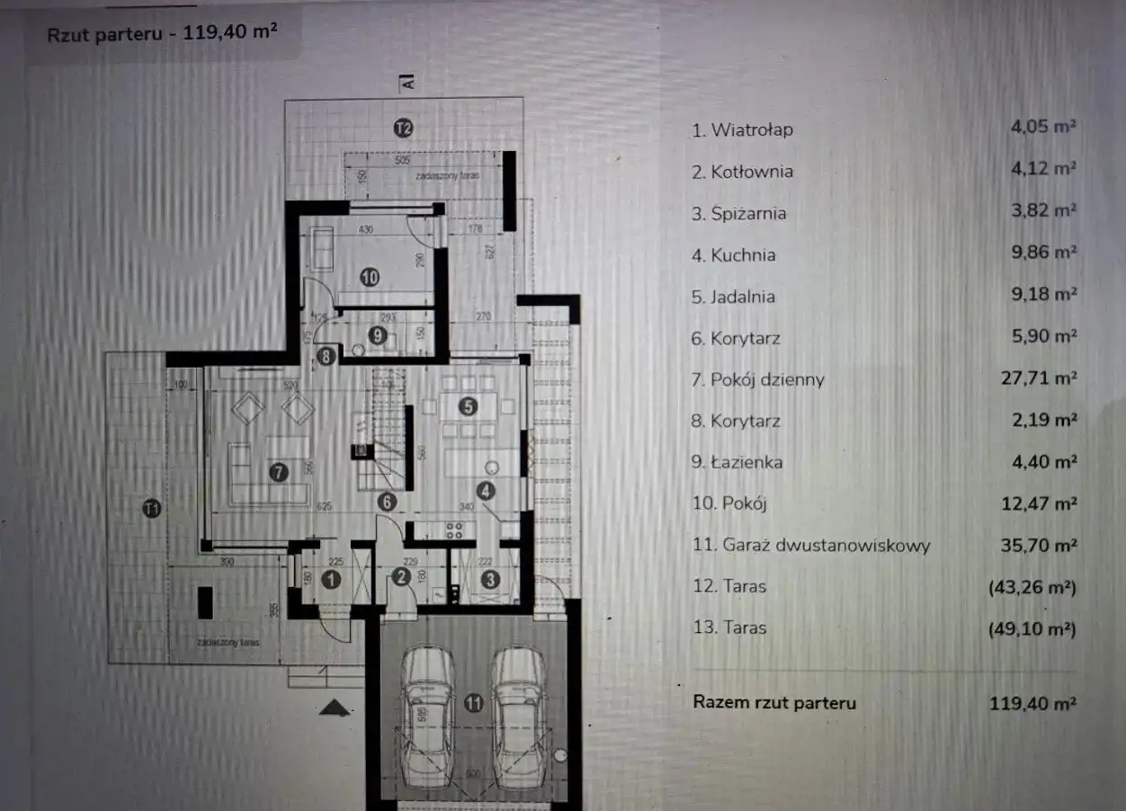 - duży garaż dwustanowiskowy z bramą na pilota,