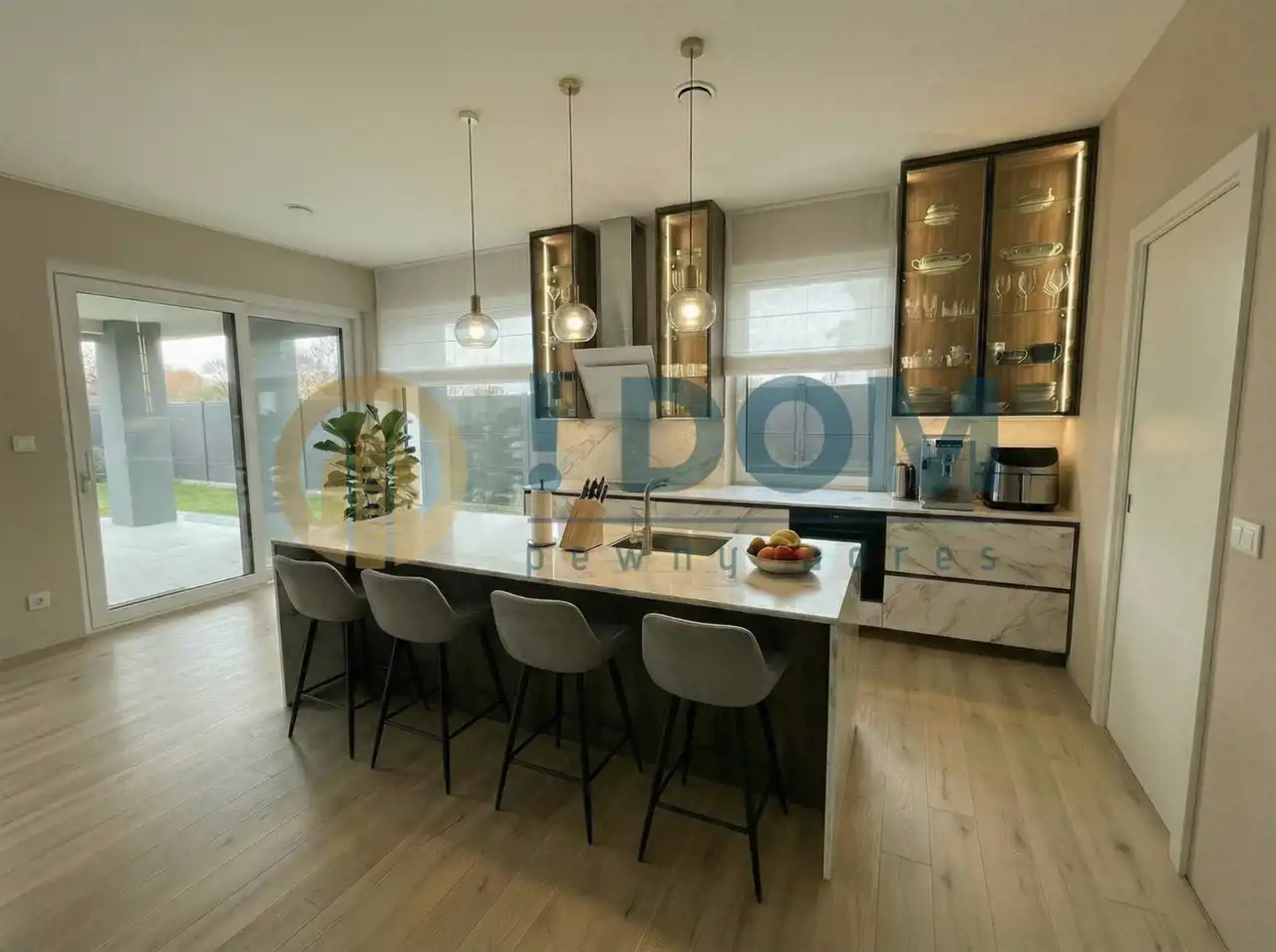 Dom znajduje się w stanie deweloperskim, wybudowany z najwyższą starannością i z użyciem materiałów premium. Funkcjonalny i perfekcyjnie zaplanowany układ pomieszczeń zapewnia wygodę codziennego życia.