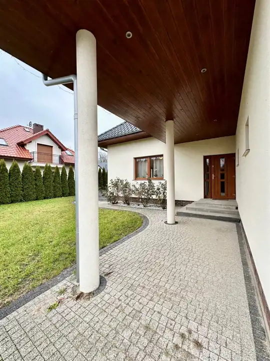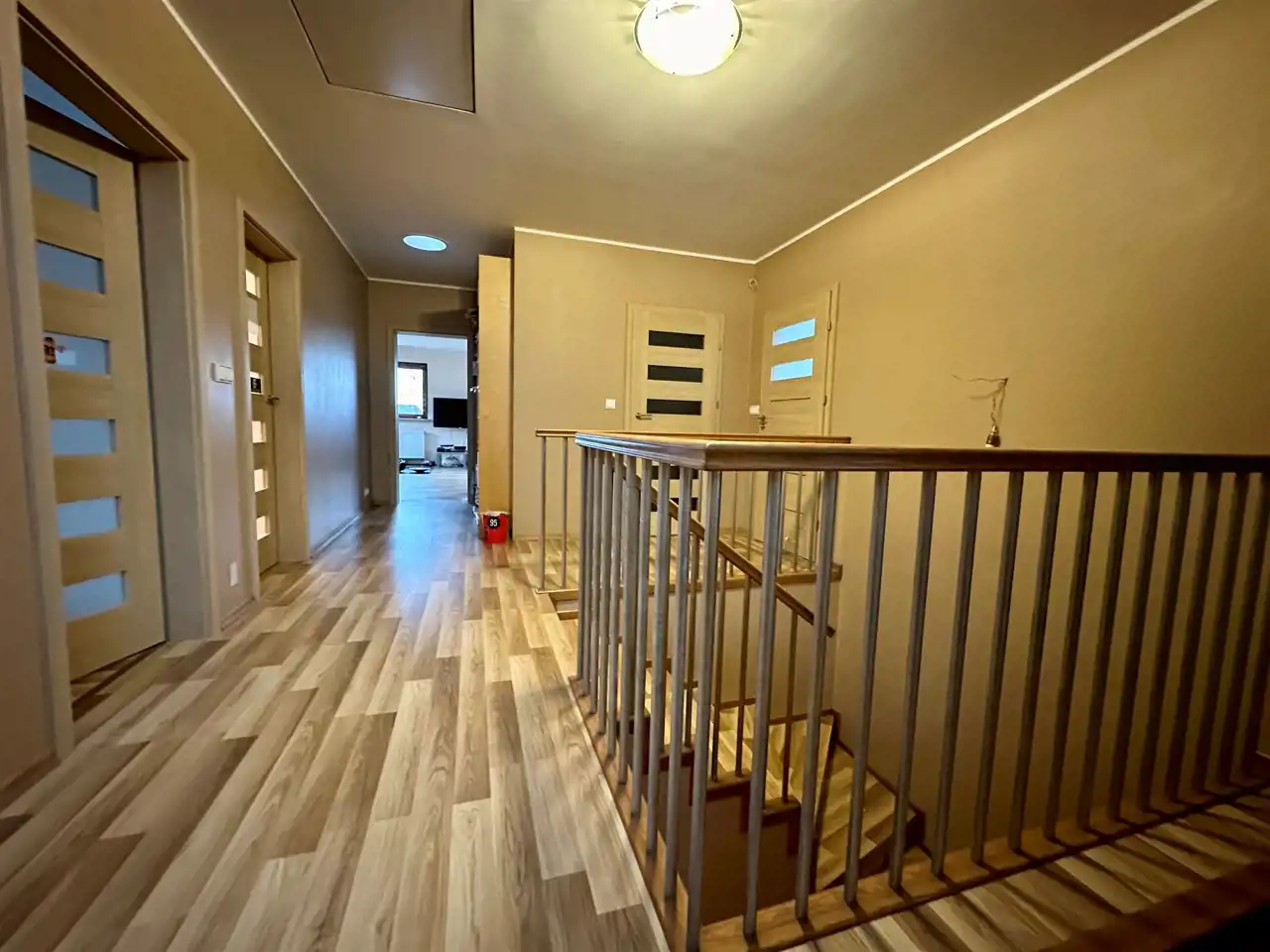Poddasze oferuje trzy dodatkowe sypialnie, idealne dla całej rodziny lub gości. Dodatkowo, gabinet stanowi świetne miejsce do pracy lub nauki zdalnej, zapewniając spokój i skupienie. Dom został dokładnie wykończony z dbałością o najmniejsze detale, co dodaje mu charakteru i elegancji. Wyjątkowe materiały wykończeniowe oraz staranne wykonanie sprawiają, że jest to idealne miejsce do zamieszkania.