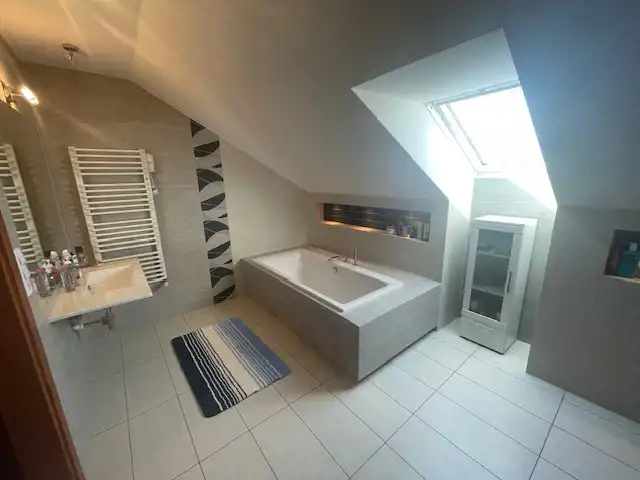 Piętro to 4 sypialnie, łazienka z wanną i natryskiem.