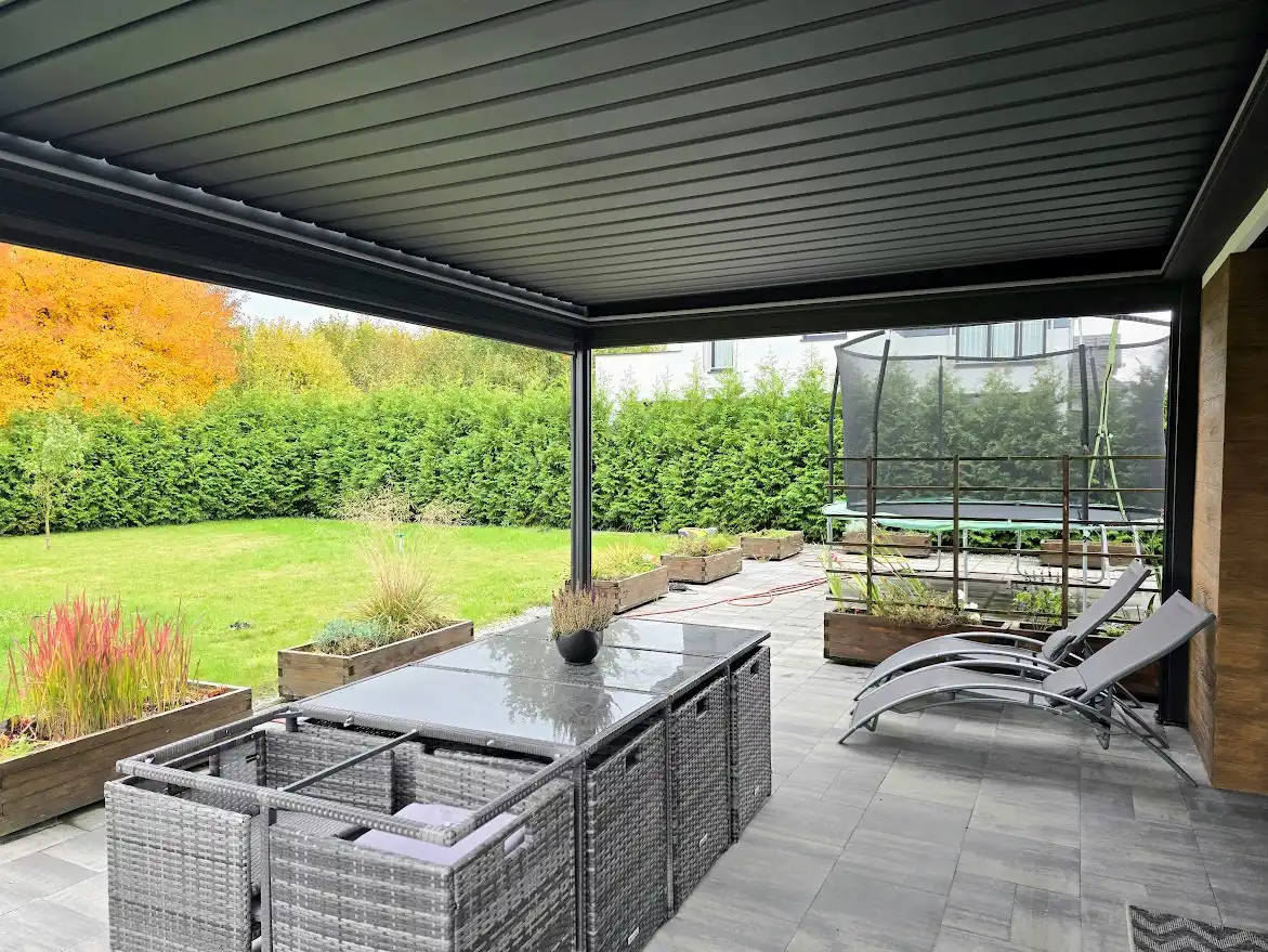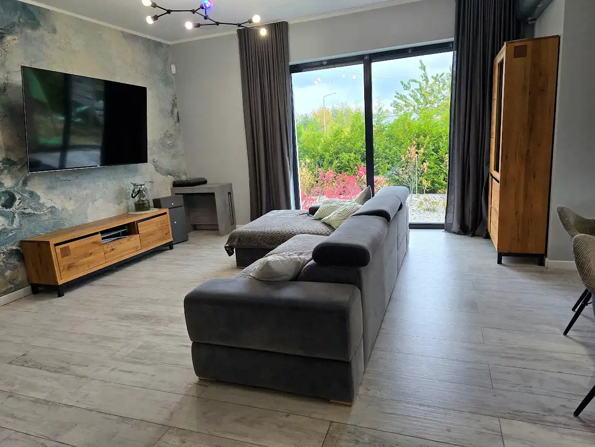 •Salon z jadalnia ok.37 m2,idealnie doświetlony z wyjściem na prawie 40 metrowy taras zadaszony pergolą sterowaną pilotem