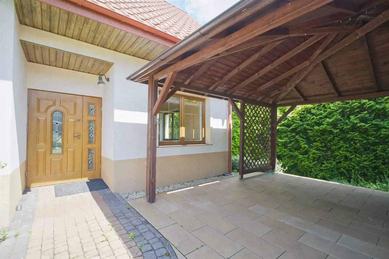 Nieruchomość ma powierzchnię użytkową 164,3 m2. Powierzchnia garażu dwustanowiskowego wynosi 48,2 m2, a działki 1051 m2.