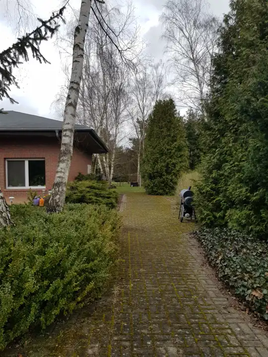 Dom o charakterze rezydencji wyposażony w system alarmowy, zbudowany w 2000 roku obłożony klinkierem. Posiada elektryczne rolety zewnętrzne, wysokość 3,5 m.