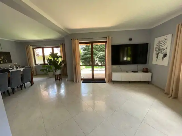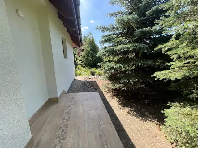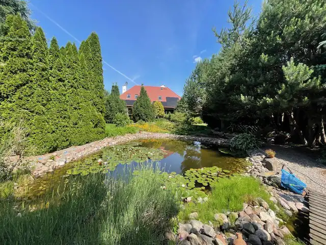 Całość przestronna, doskonała funkcja.Ogród z automatycznym nawadnianiem, liczne, wieloletnie nasadzenia, oczko wodne, kaskada wodna, ogródek warzywny.Otoczona wysokimi drzewami co stwarza intymność mieszkańcom.