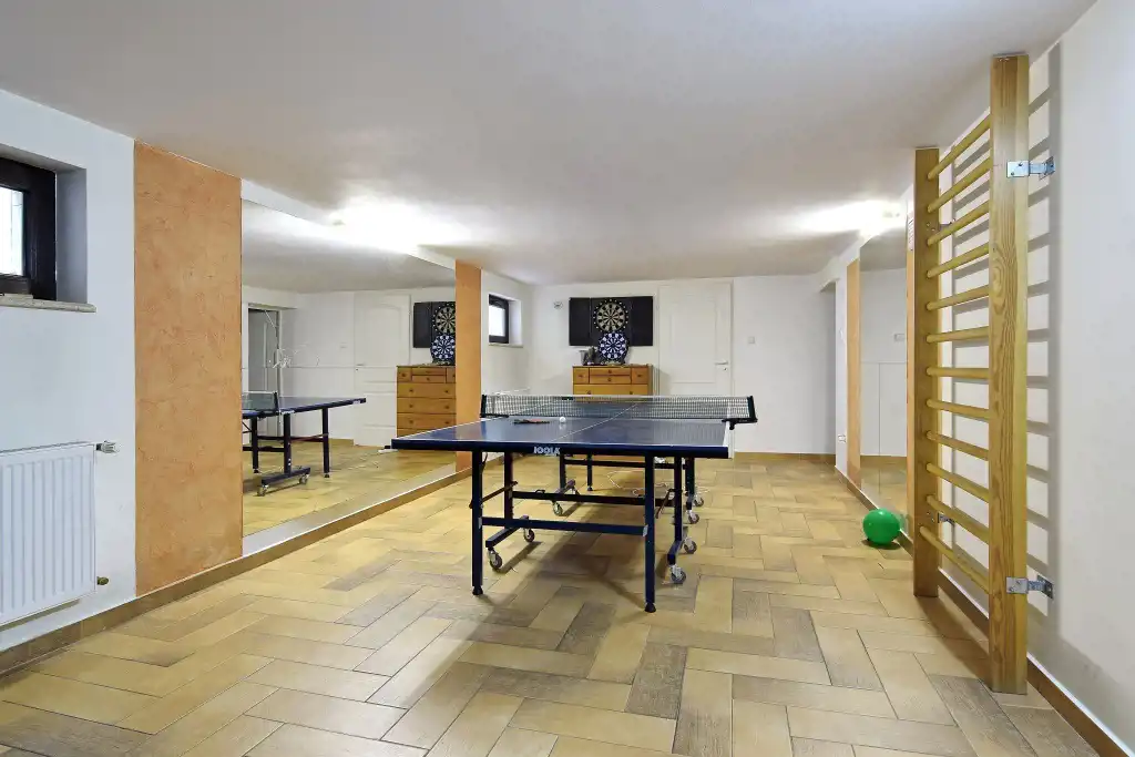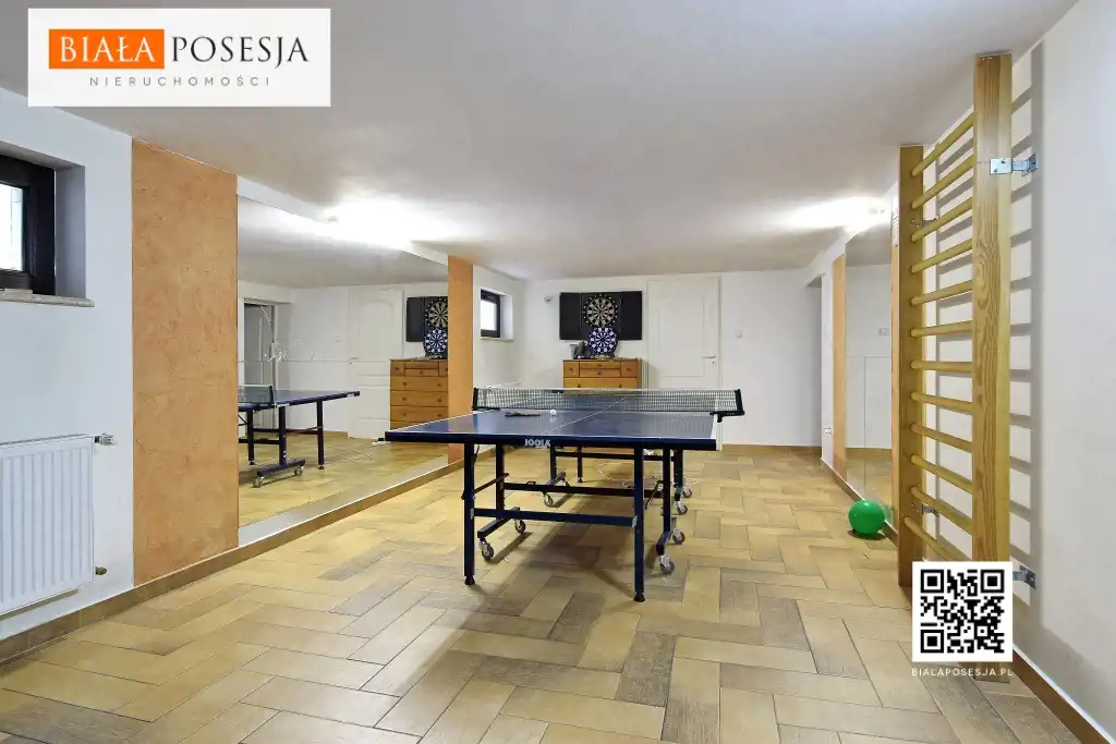 Poddasze zostało zaaranżowane jako przestronny pokój pracy, w którym łatwo odnajdziesz spokój i inspirację. Piwnica to przestrzeń dedykowana relaksowi – znajdziesz tu saunę, pokój do gier, a także funkcjonalną kotłownię oraz garaż na dwa samochody.