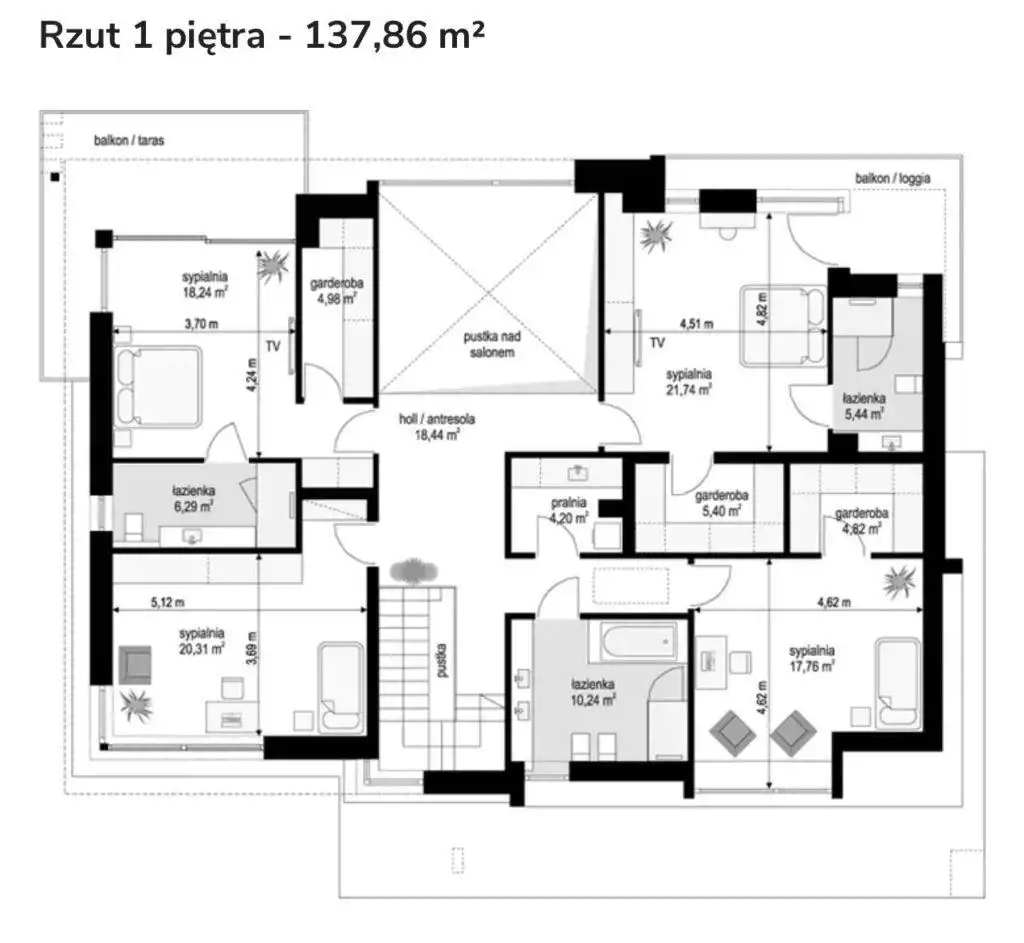 - Charakterystyka mieszkania 259.72 m2, 5 pokoi, do wykończenia