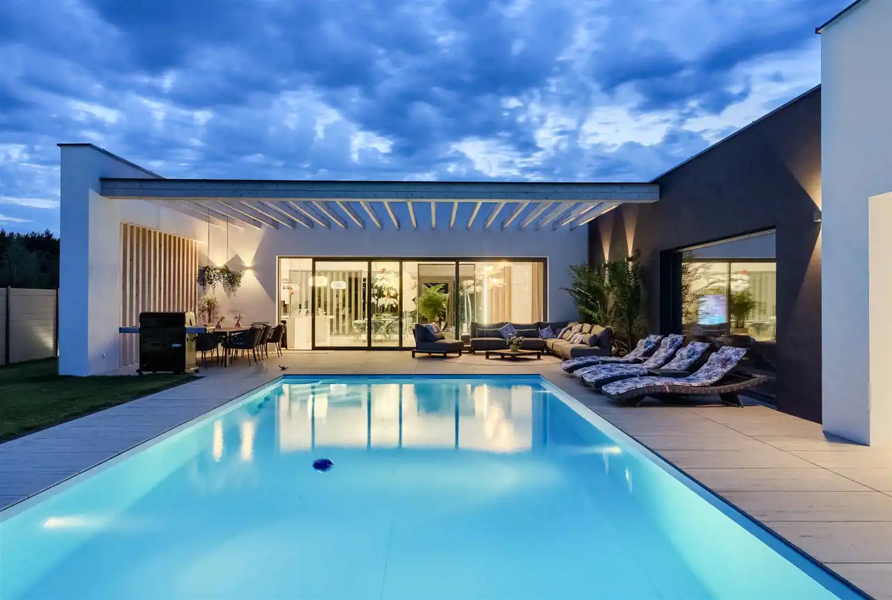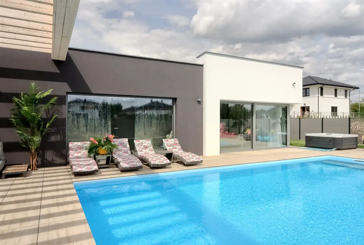 Dom wyposażony jest w basen z zamykaną roletą elektryczną oraz jacuzzi.