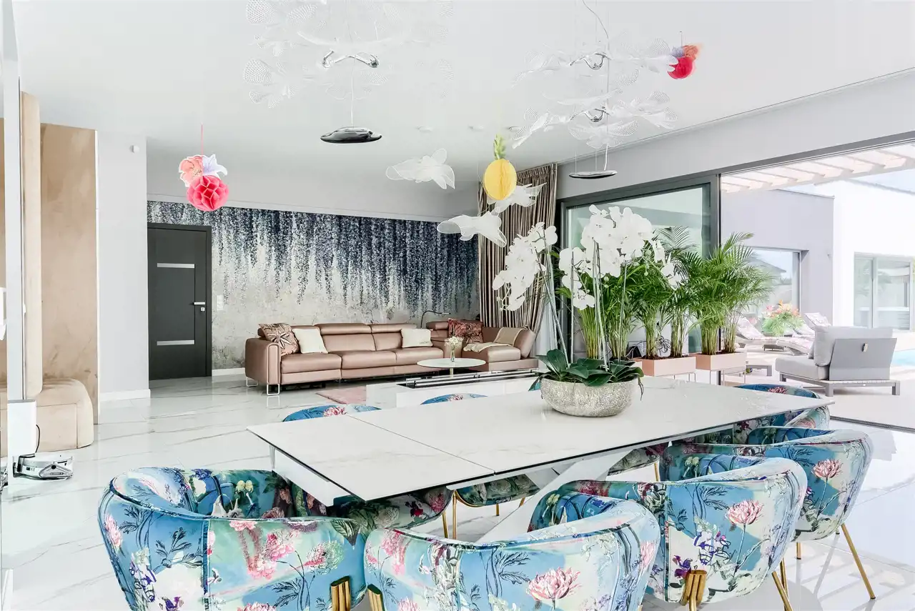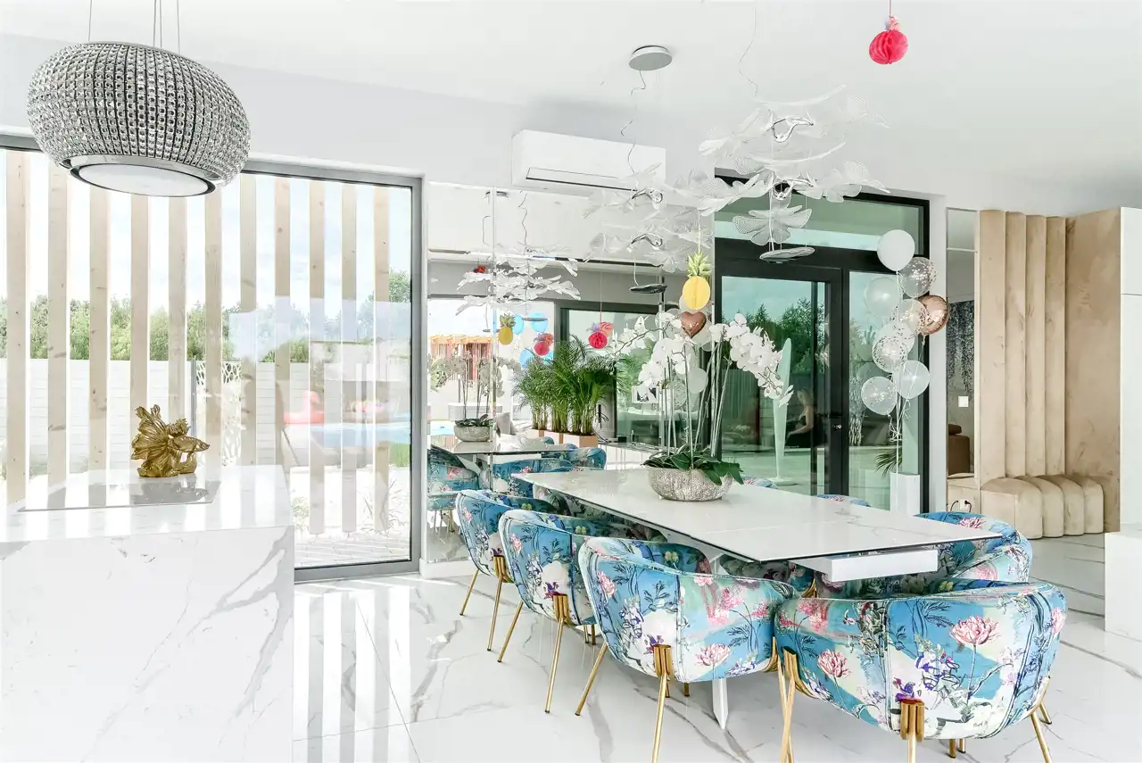 Wnętrze domu zostało starannie zaprojektowane, aby nadać nieruchomości niepowtarzalny charakter i prestiż.