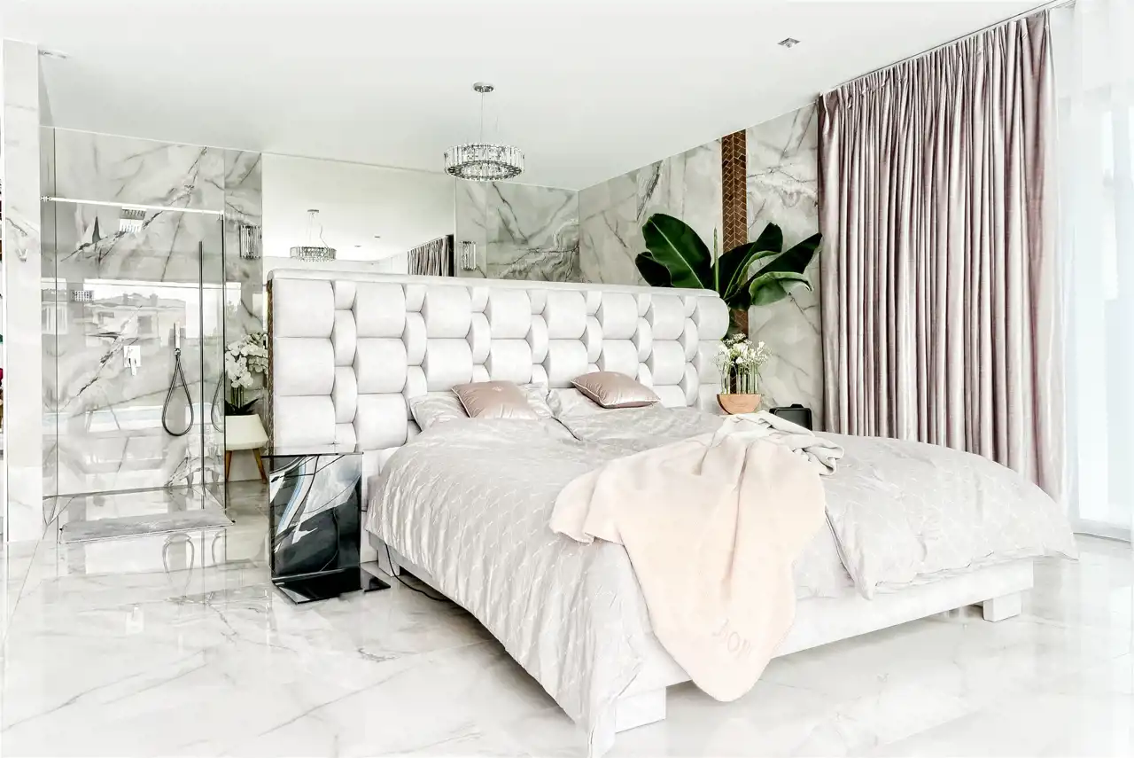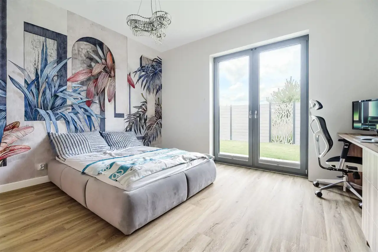 Przestronne sypialnie, w tym jedna połączona z prywatną łazienką oraz garderobą. Kompletnie wyposażone i umeblowane.
