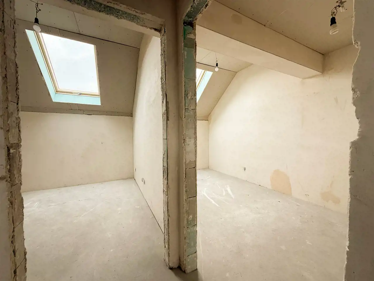 ◉ Sufity podwieszane na poddaszu, wykonane z płyty GK, na stelażu, bez spoinowania